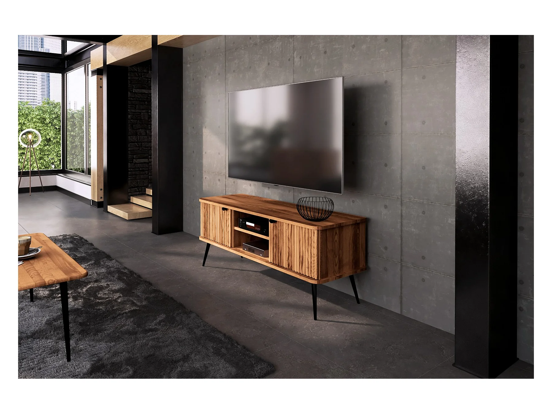 KULA - TV-Möbel mit Welltüren aus Kernbuche naturgeölt
