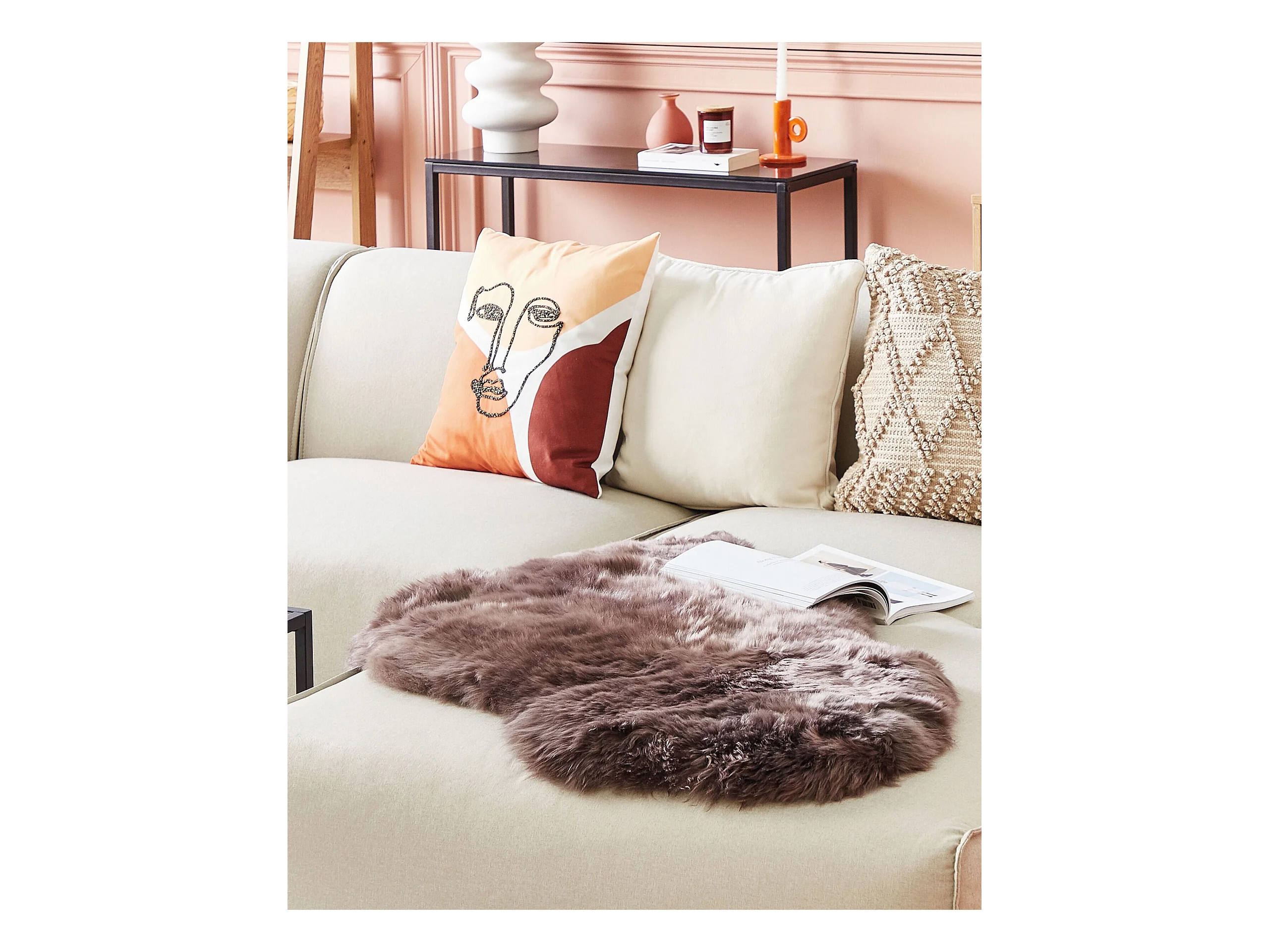 Kunstfell Teppich Schaf braun Überwurf Webpelz Fellform 63 x 95 cm Mungo