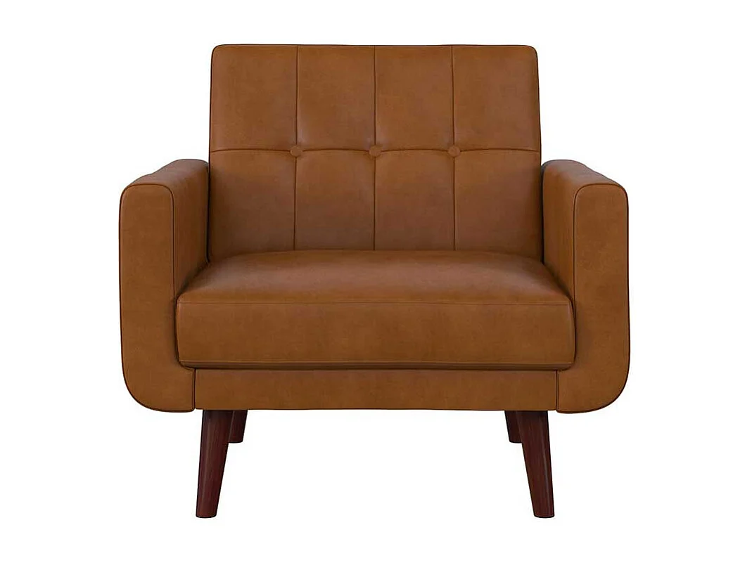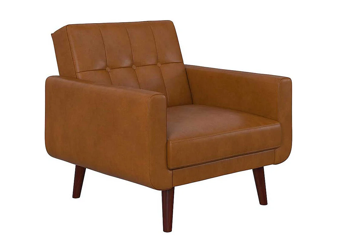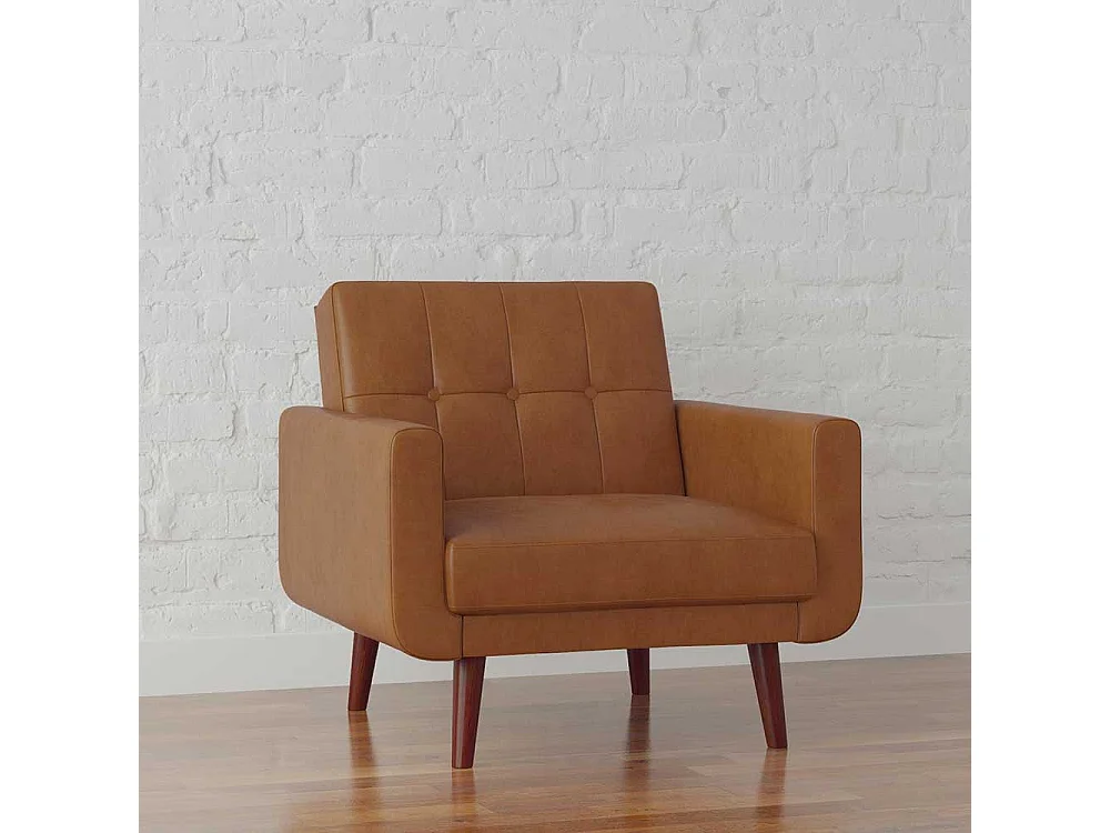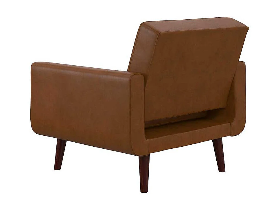 Kunstleder Retrosessel in Braun Vierfußgestell aus Holz