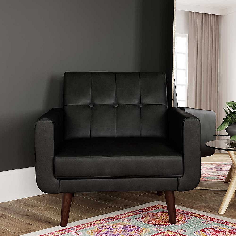 Kunstleder Wohnzimmersessel im Retrostil Schwarz und Dunkelbraun