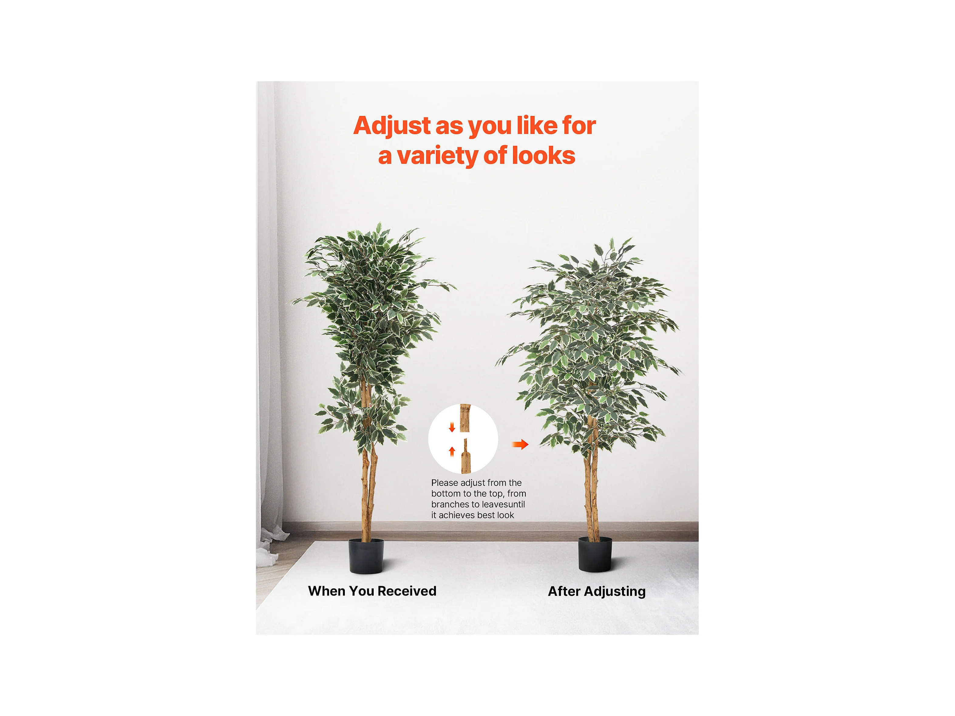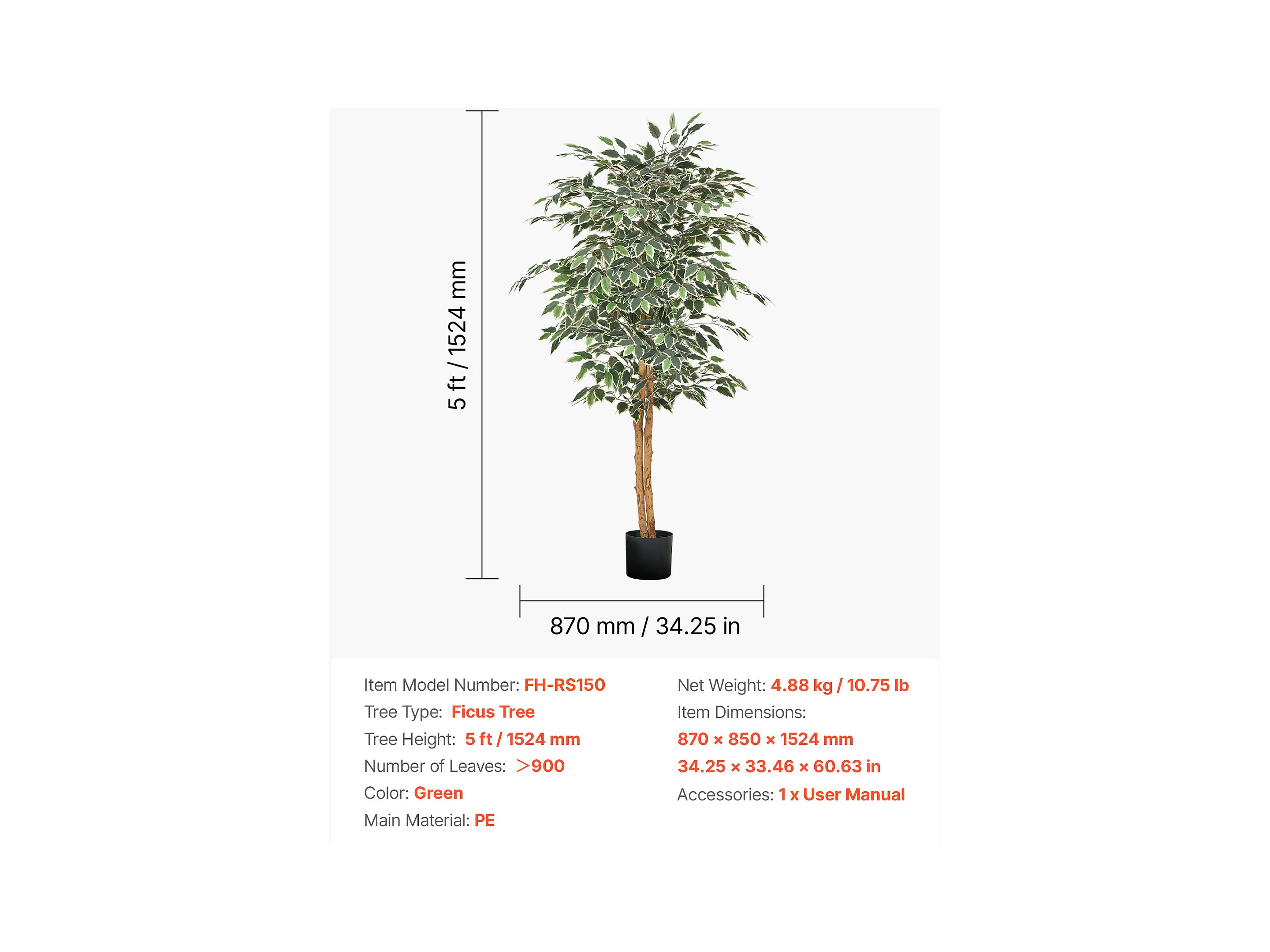 Künstliche Bäume SucceBuy 150 cm Kunstbaum, Dekorative PE-Pflanze mit Schwarzem Topf, Naturgetreuem Stamm und Grünen Blättern, Kunst-Ficus für Büro, Wohnzimmer
