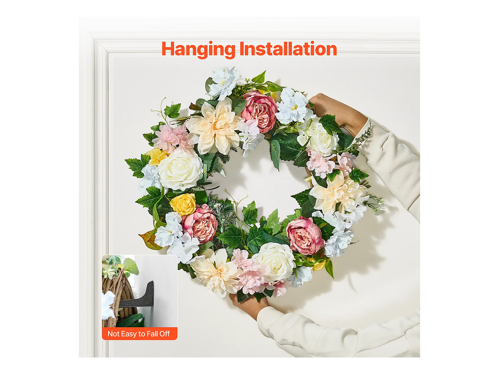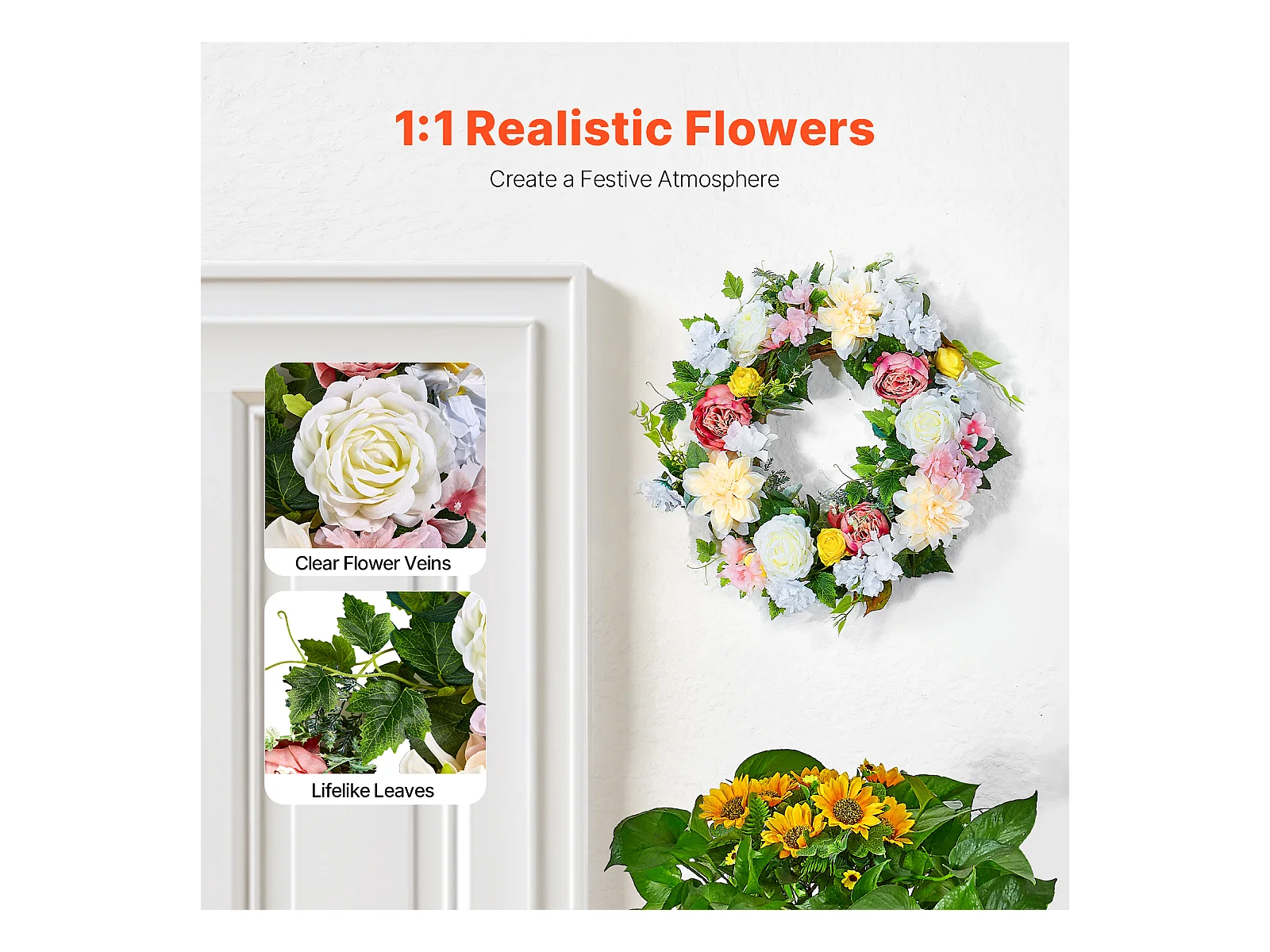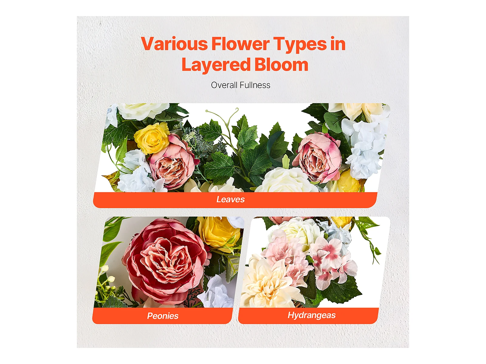 Künstliche Pflanze, SucceBuy Künstlicher Kranz 61 cm (Weiße Pfingstrosen, Gelb-Rosa Hortensien)