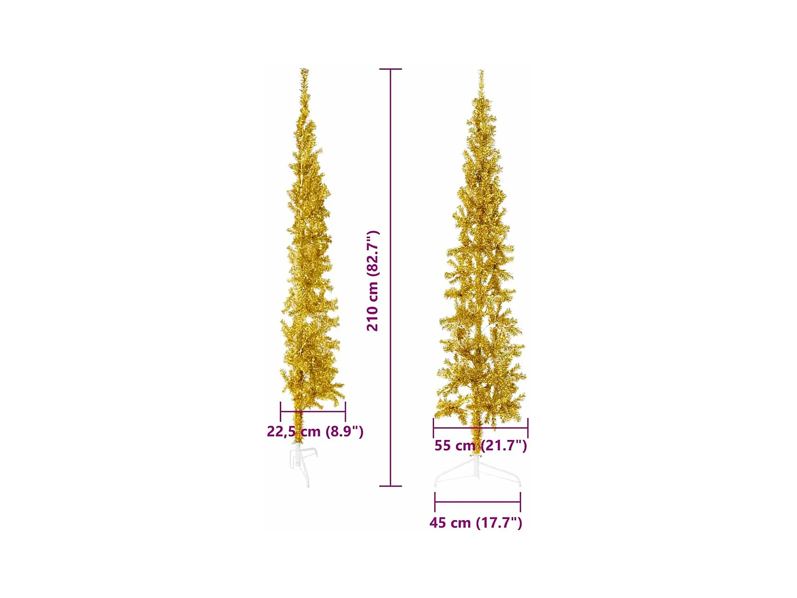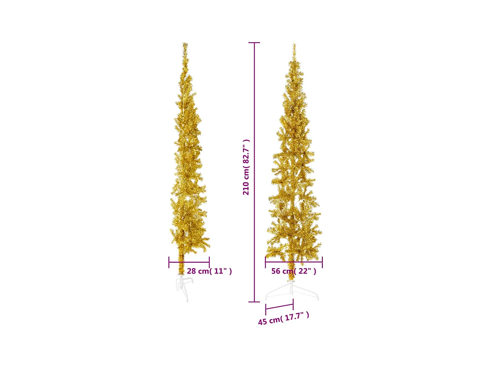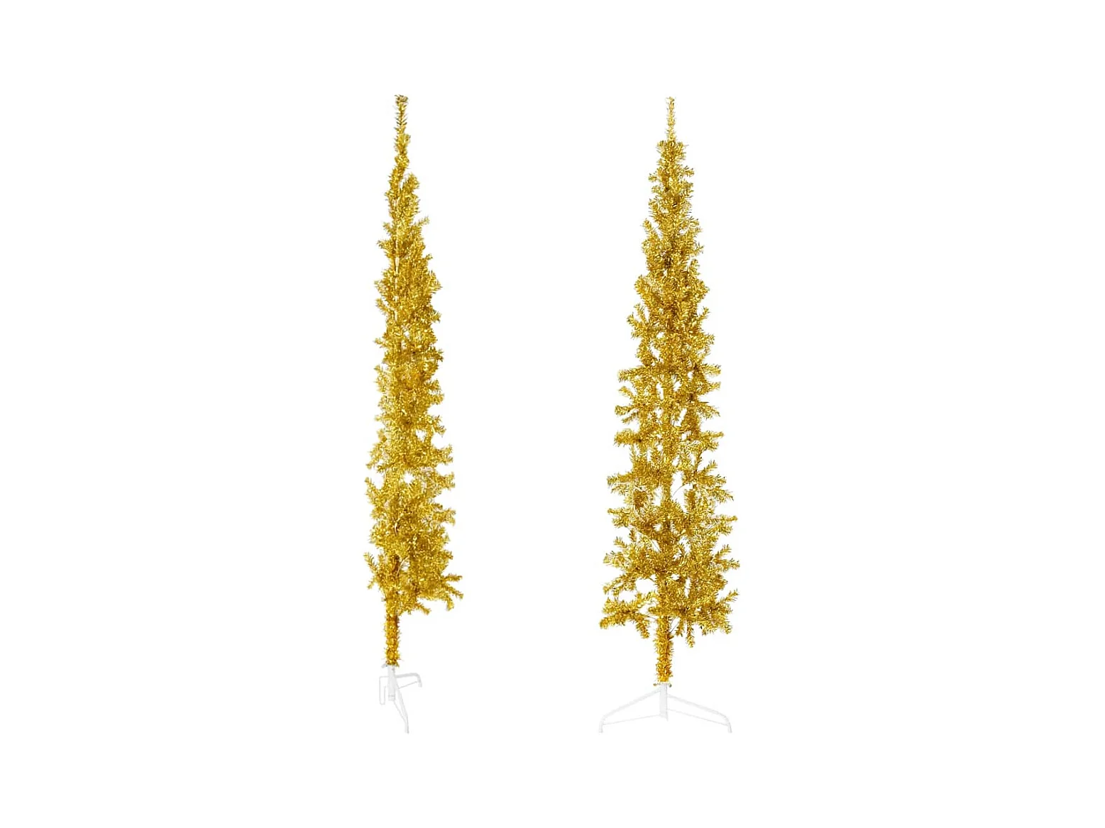 Künstlicher Halb-Weihnachtsbaum mit Ständer Schlank Gold 210 cm