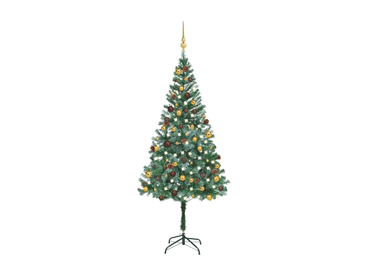 Künstlicher Weihnachtsbaum mit Beleuchtung Kugeln Zapfen 180 cm
