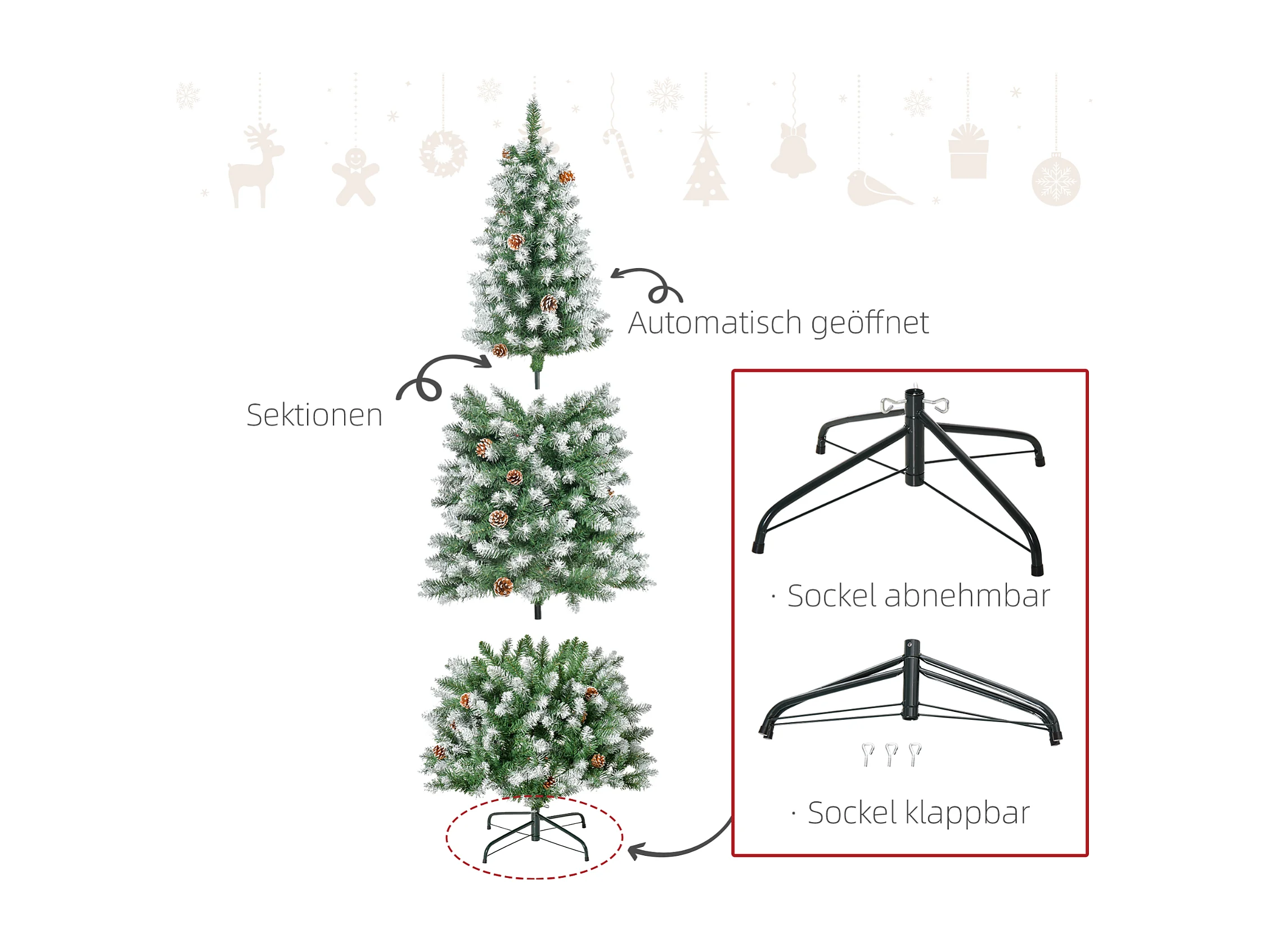 Künstlicher Weihnachtsbaum,Weihnachtsdeko 37 Zapfen, verschneite Spitzen, 180 cm