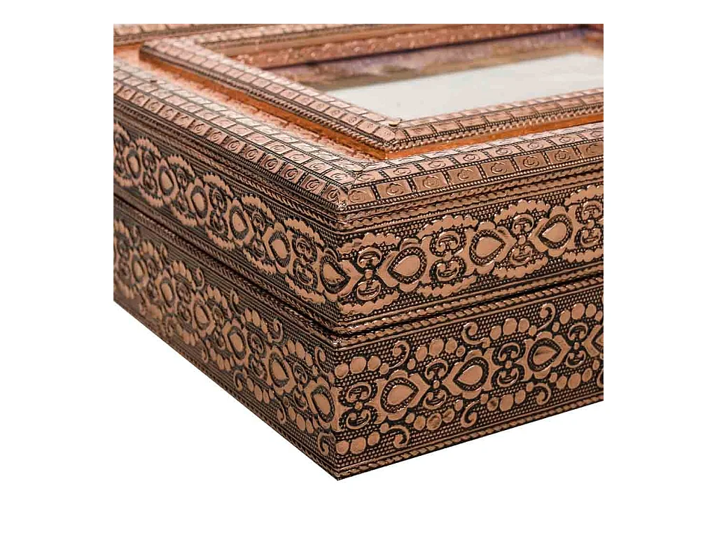 Kupfergeprägtes Metallschmuckkästchen 30x25x7,5h cm