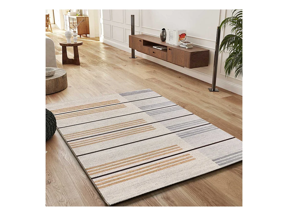 Kurzflorteppich - ethnisch - grau / beige - 160x230 cm - CRAFT