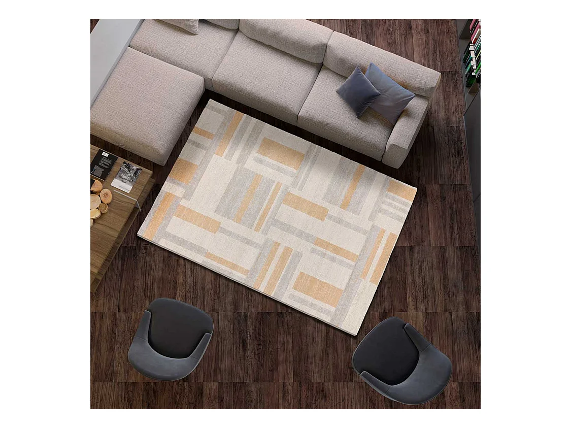 Kurzflorteppich - geometrisch - beige - 80x150 cm - CRAFT