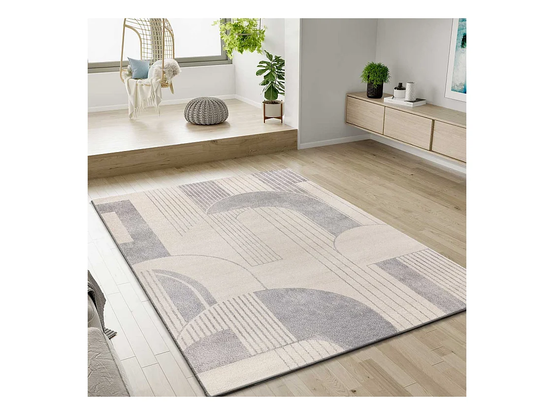 Kurzflorteppich - geometrisch - beige / grau - 133x190 cm - PORTO