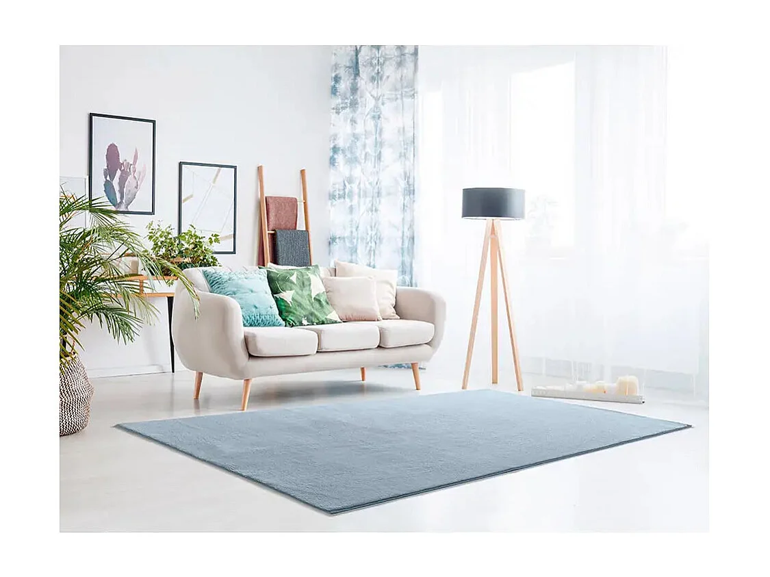 Kurzflorteppich - waschbar und rutschfeste - Einfarbiger - blau - 60x120 cm - LOFT