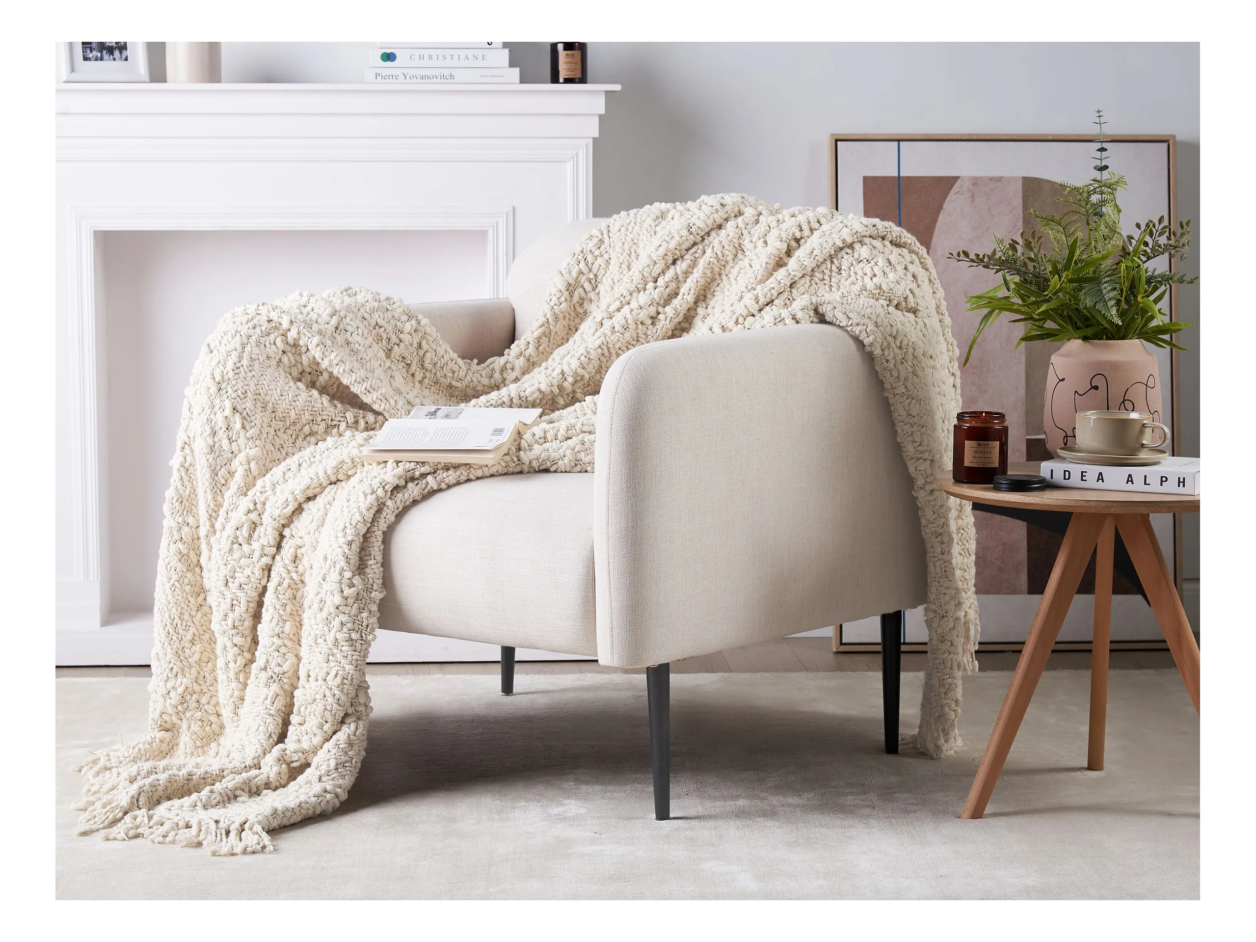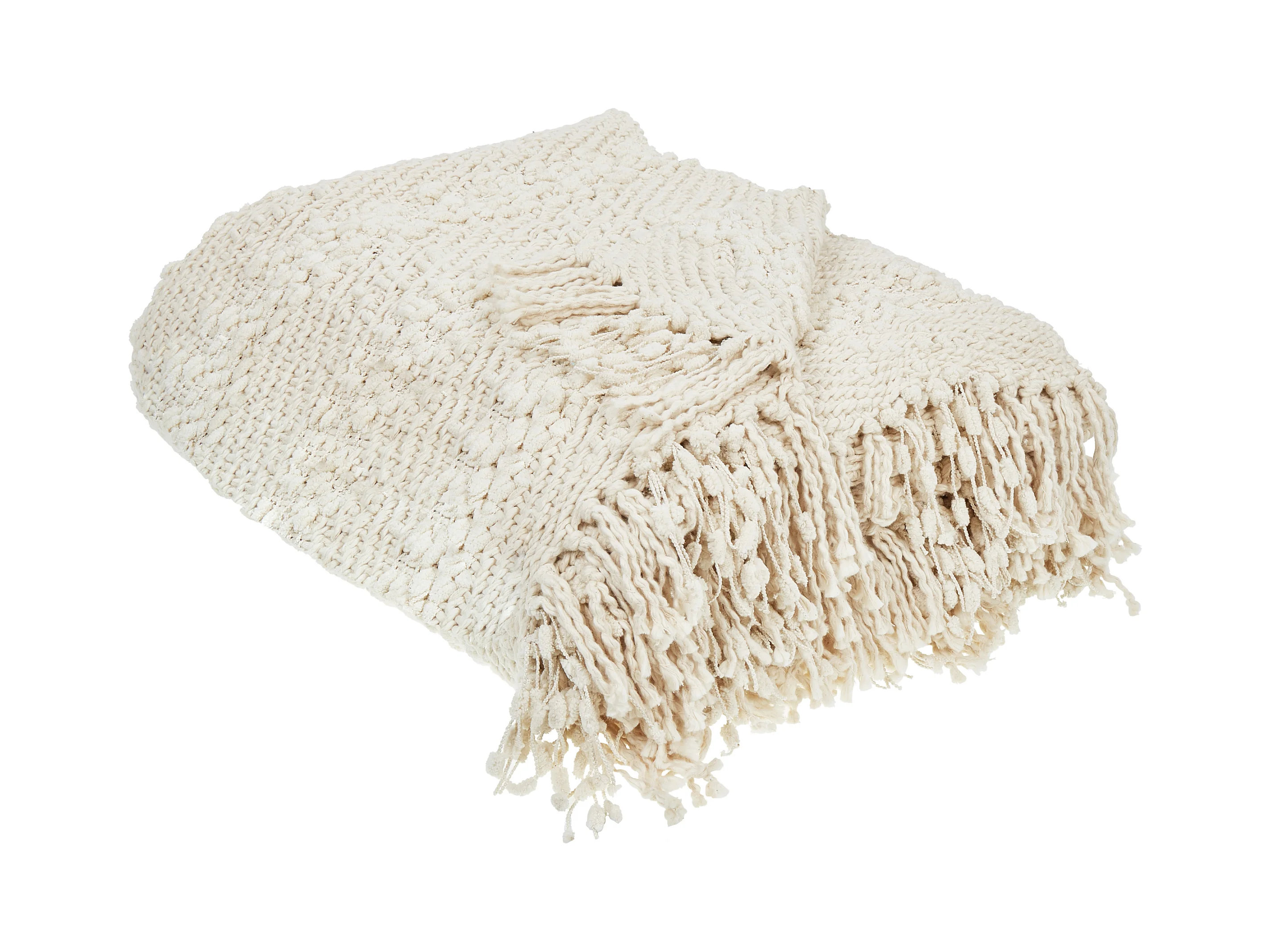 Decke Baumwolle gestrickt creme weiß mit Quasten 150 x 200 cm Kuscheldecke Vella