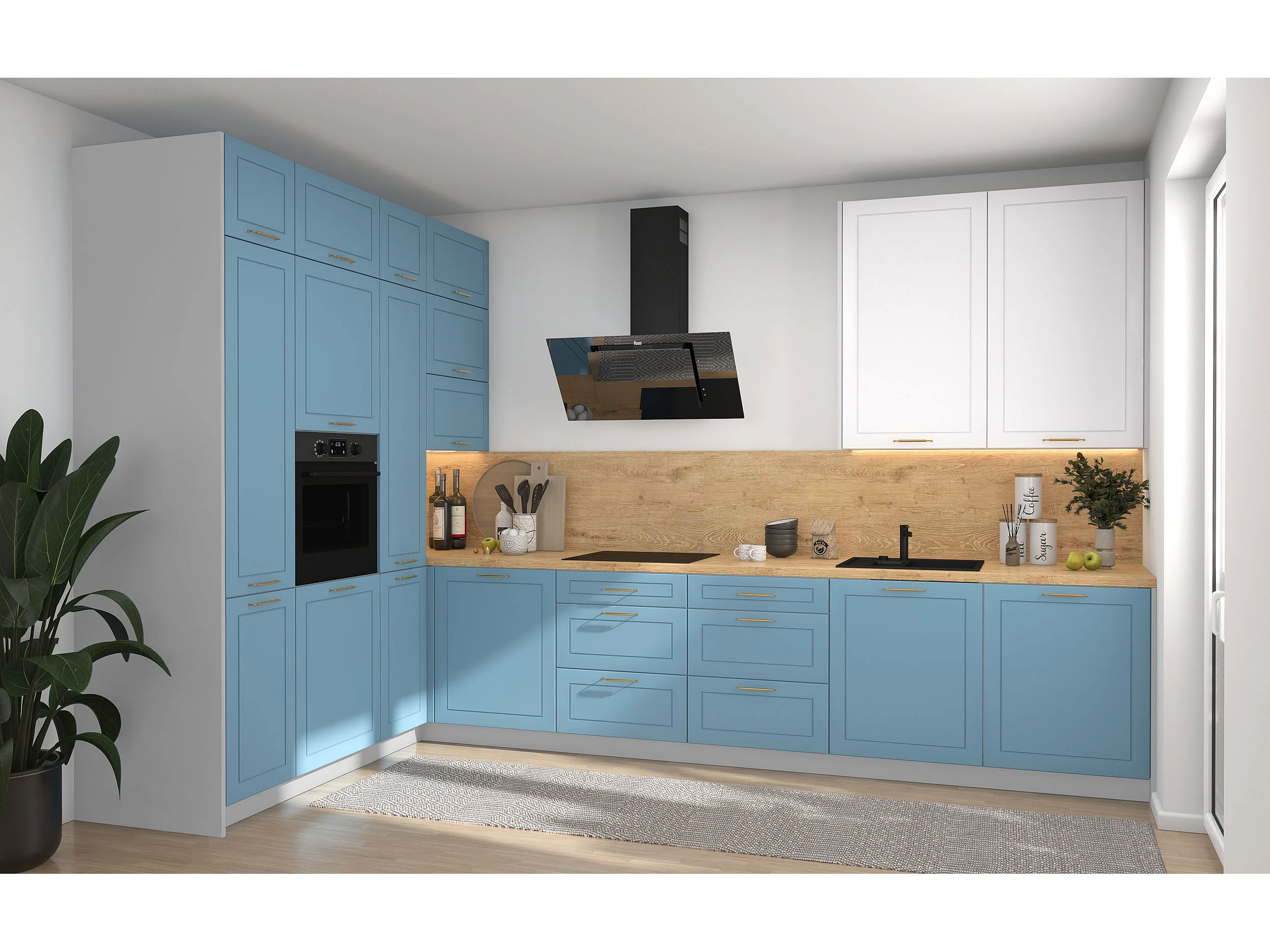 L-FORM KÜCHENZEILE Bari (16-tlg) Grau / Pastellblau - Signalweiß