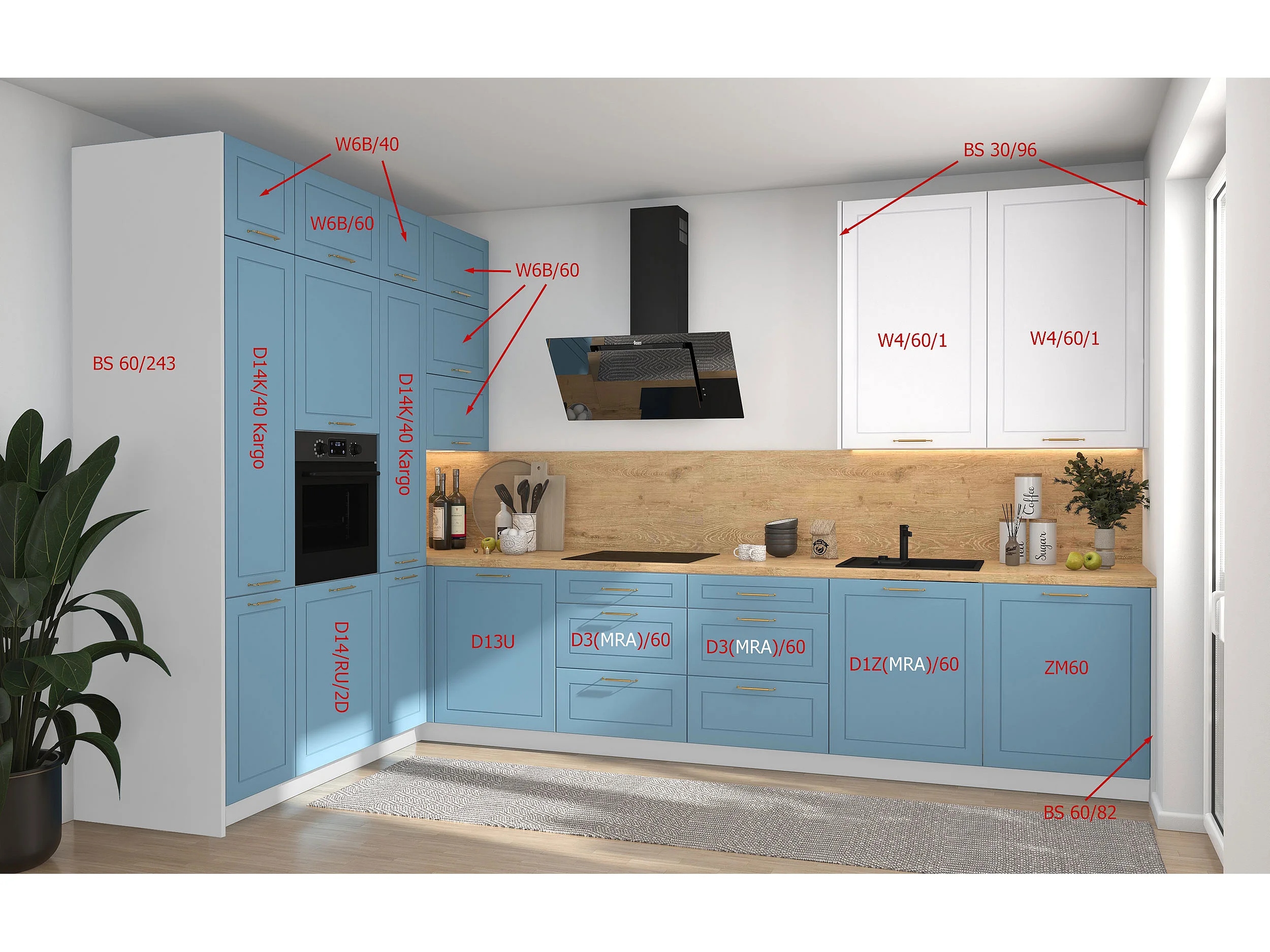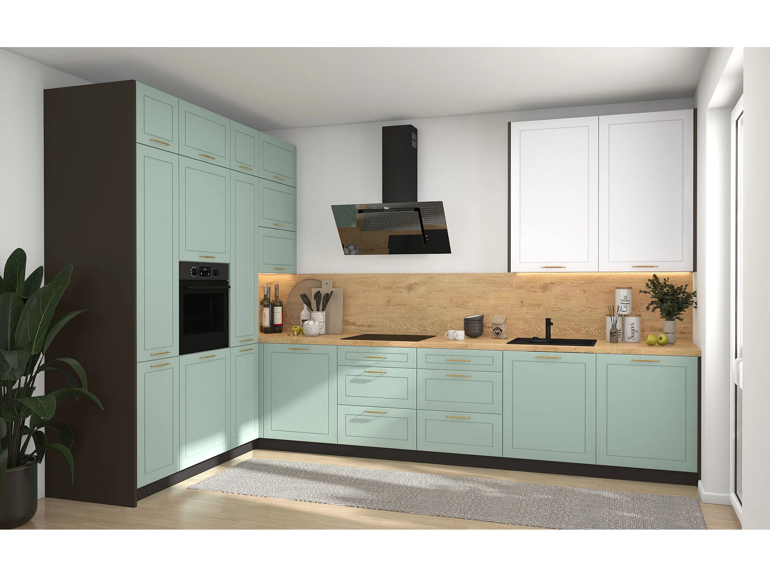 L-FORM KÜCHENZEILE Bari (16-tlg) Lava / Blassgrün - Signalweiß