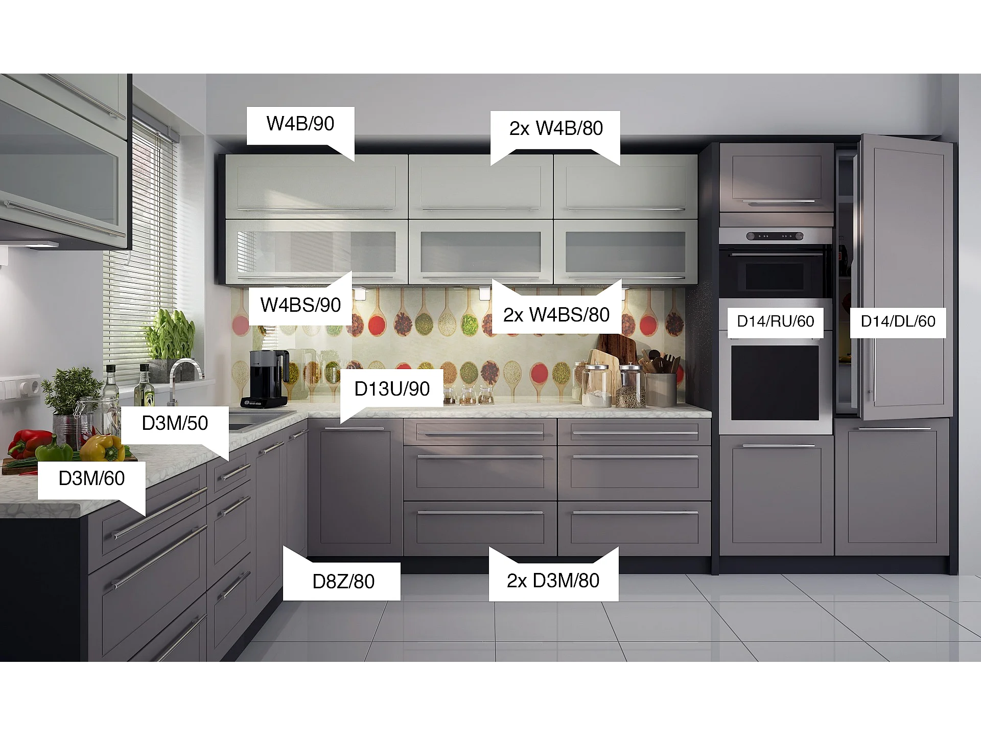 L-FORM KÜCHENZEILE Kvantum Lava / Vanille-Dust Grey Matt 385 / 256 / 207 cm (14-teilig)