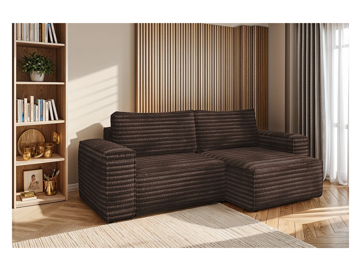 L-förmiges Bohoo-Ecksofa mit Schlaffunktion, Stoff Velo, Braun, Rechts