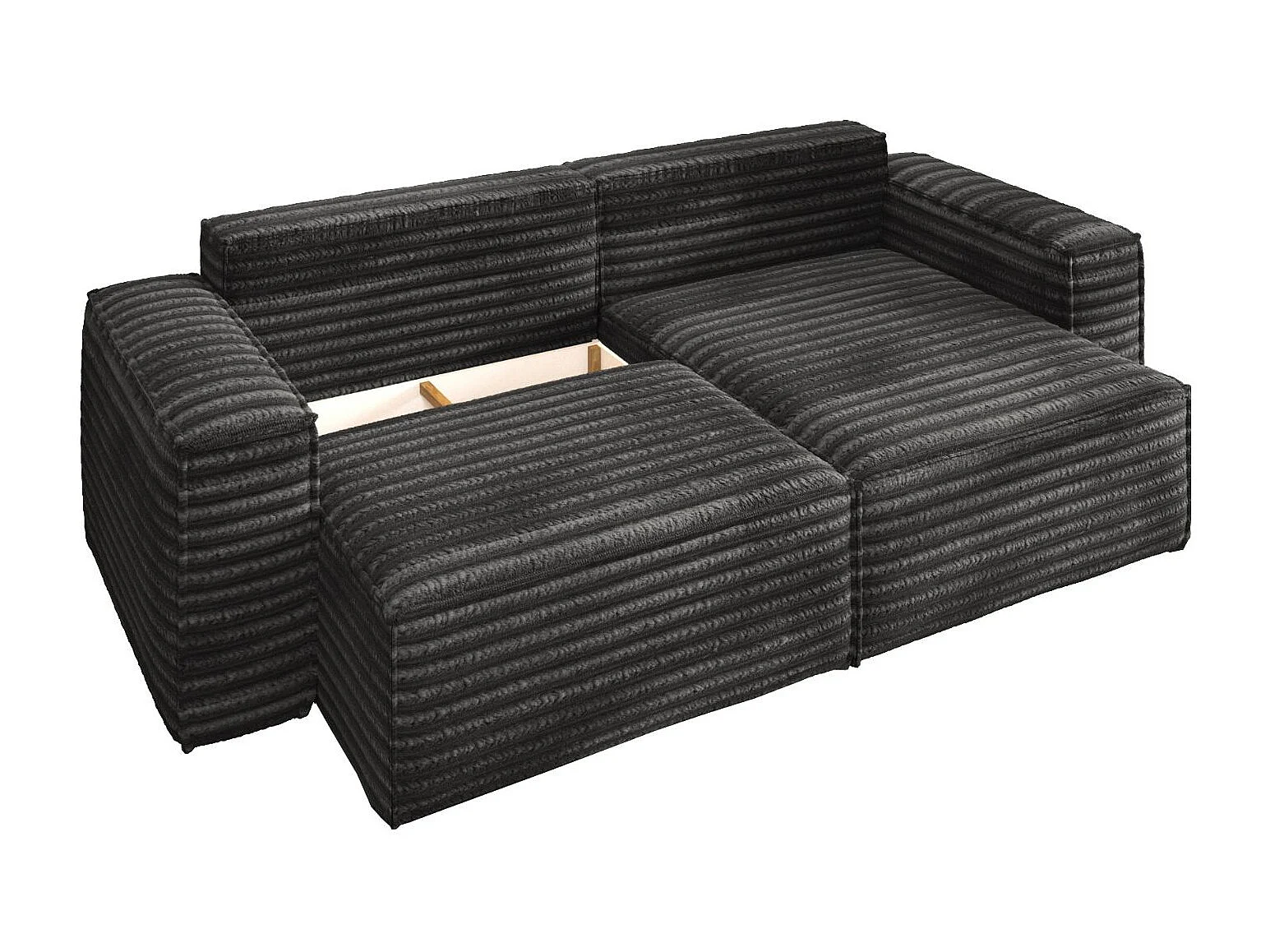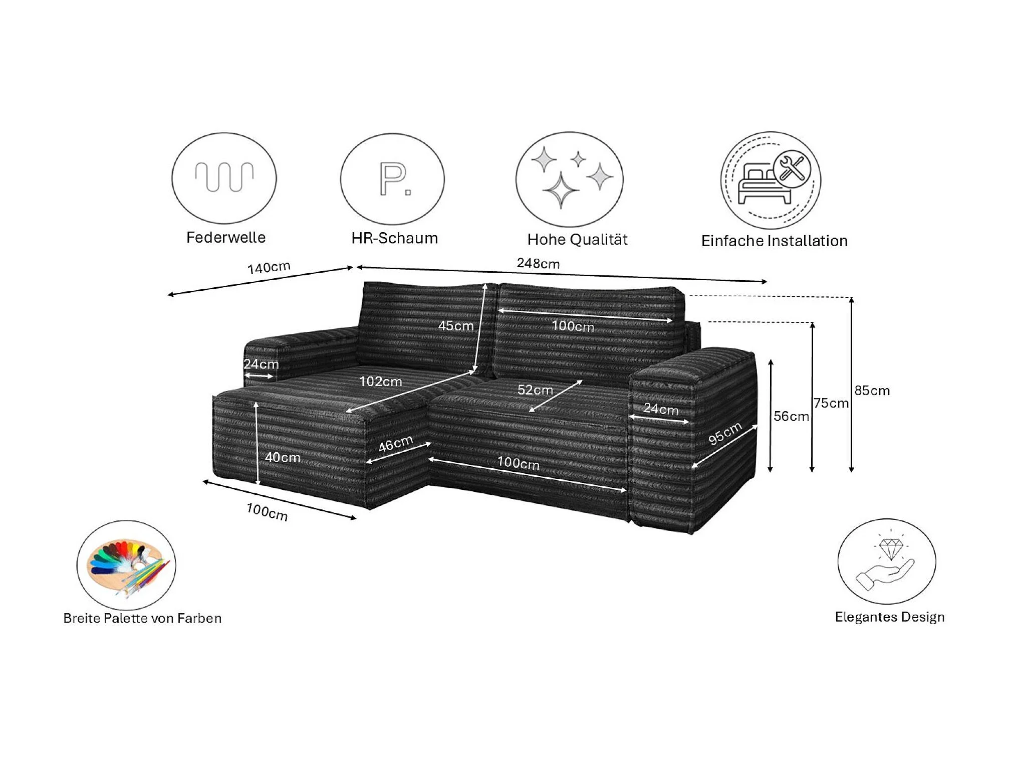 L-förmiges Bohoo-Ecksofa mit Schlaffunktion, Stoff Velo, Dunkelgrau, Rechts