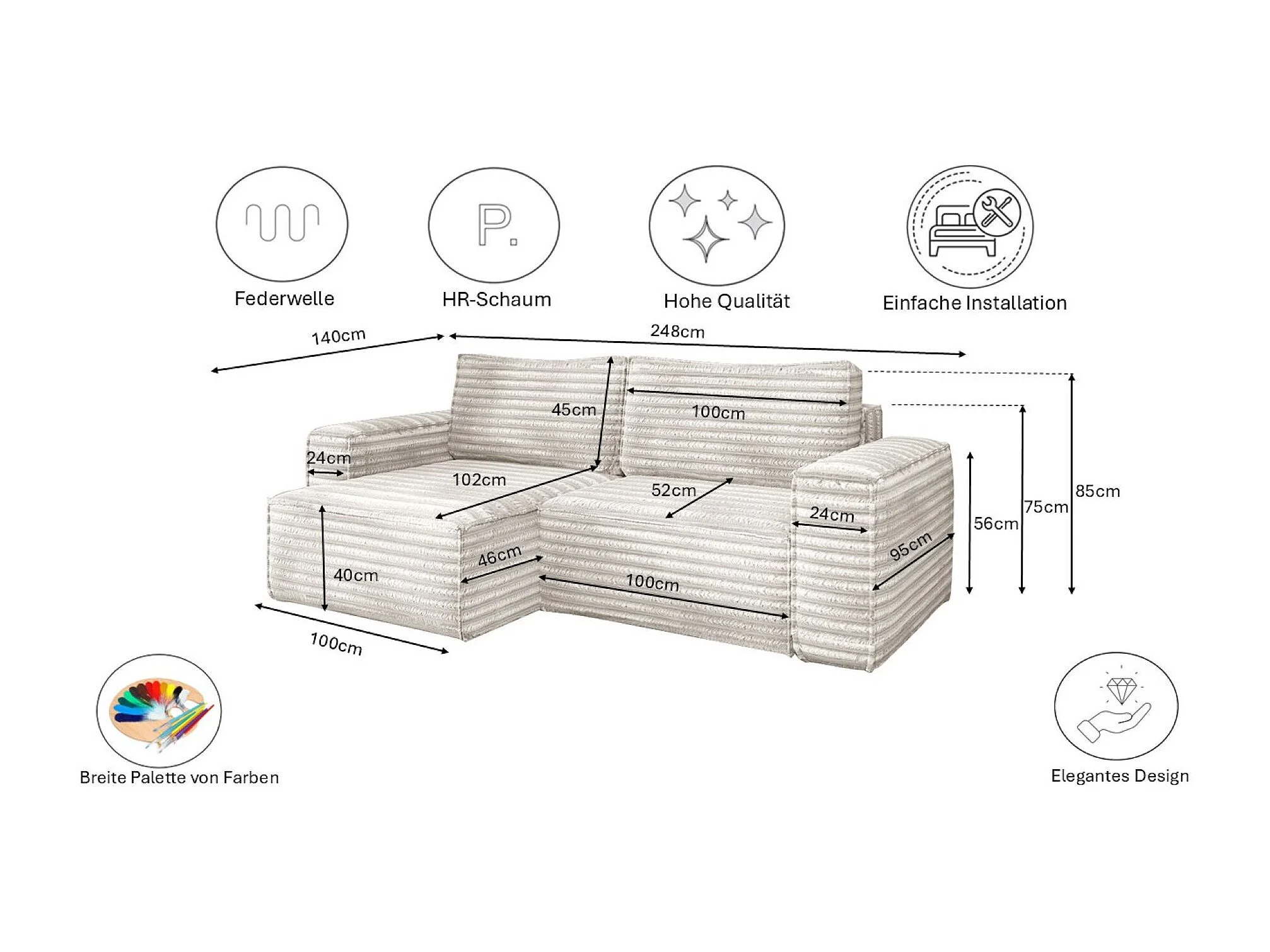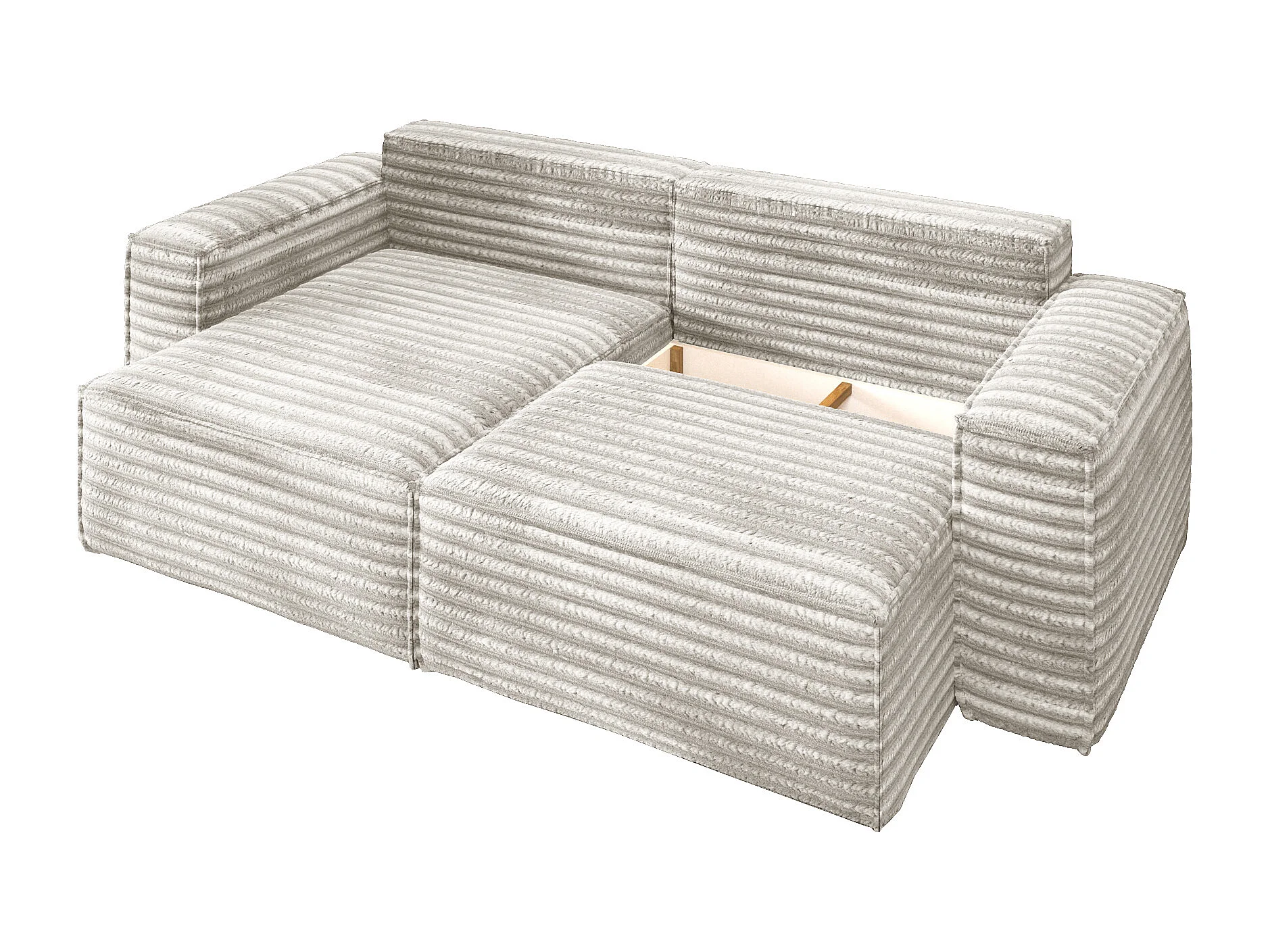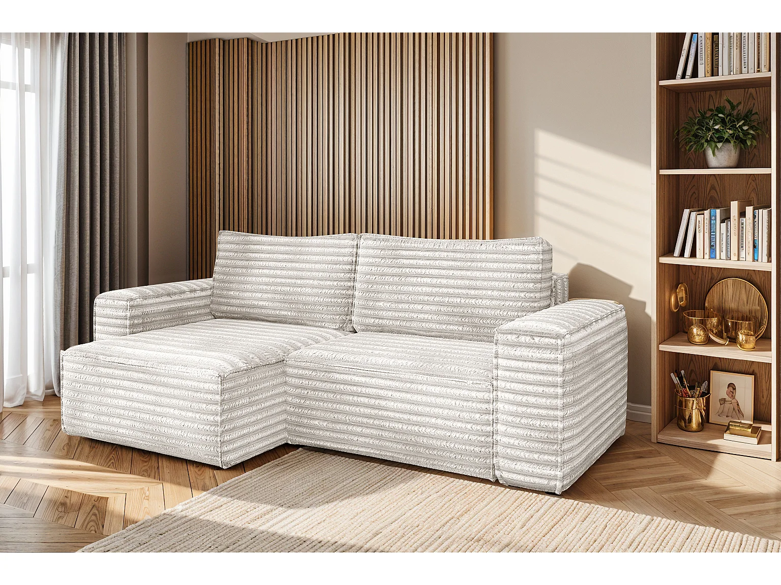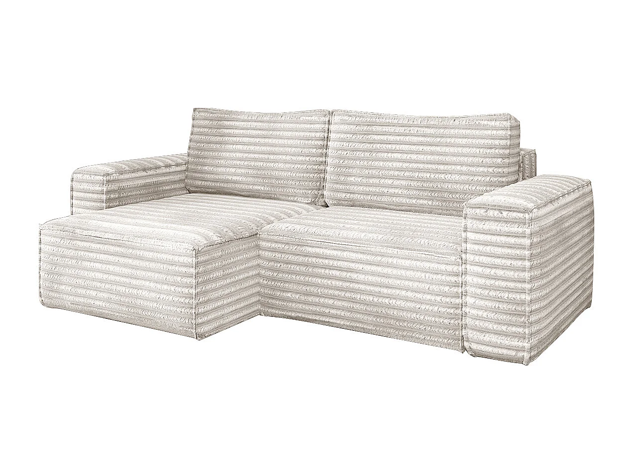 L-förmiges Bohoo-Ecksofa mit Schlaffunktion, Stoff Velo, Ecru, Links