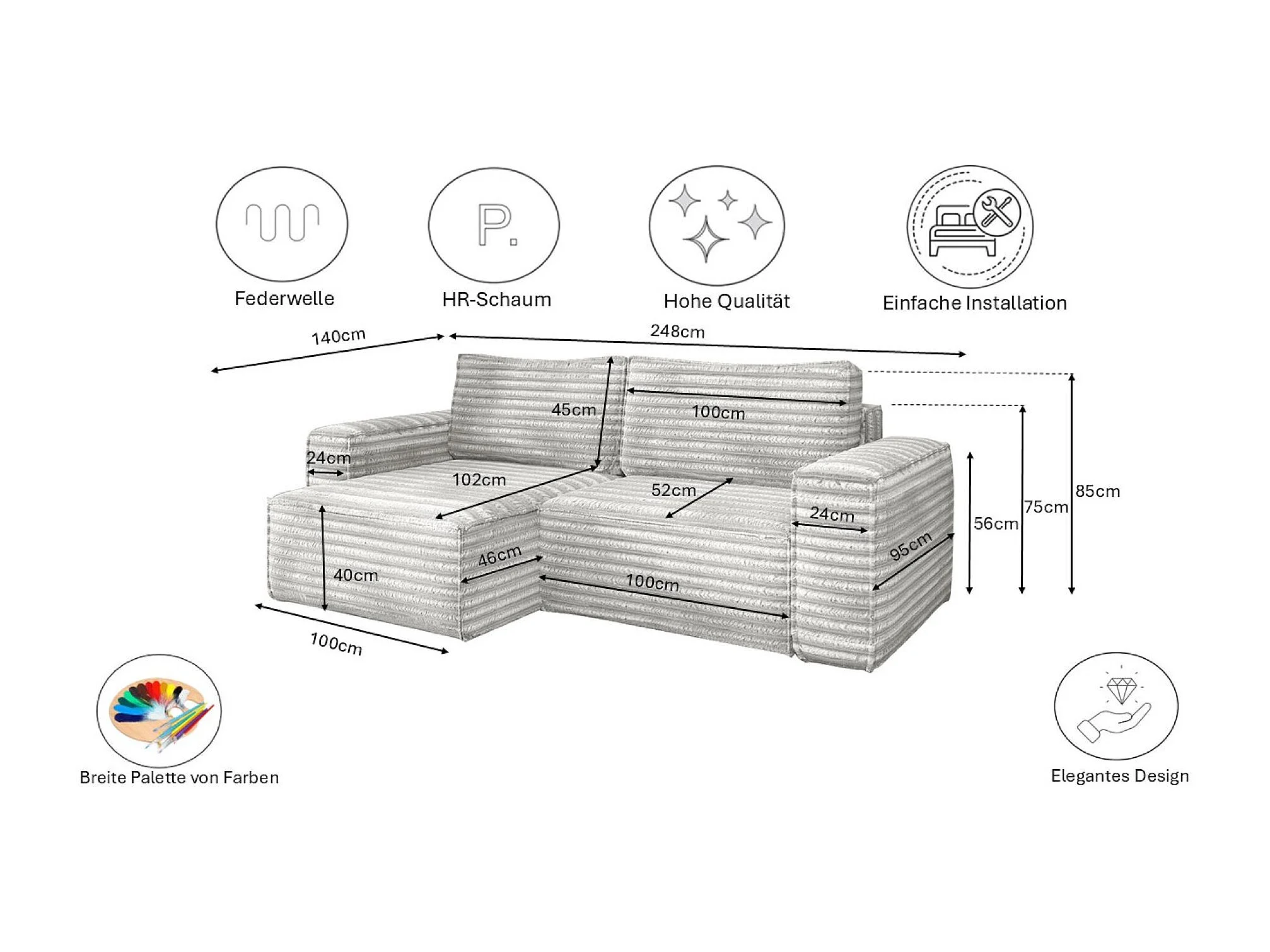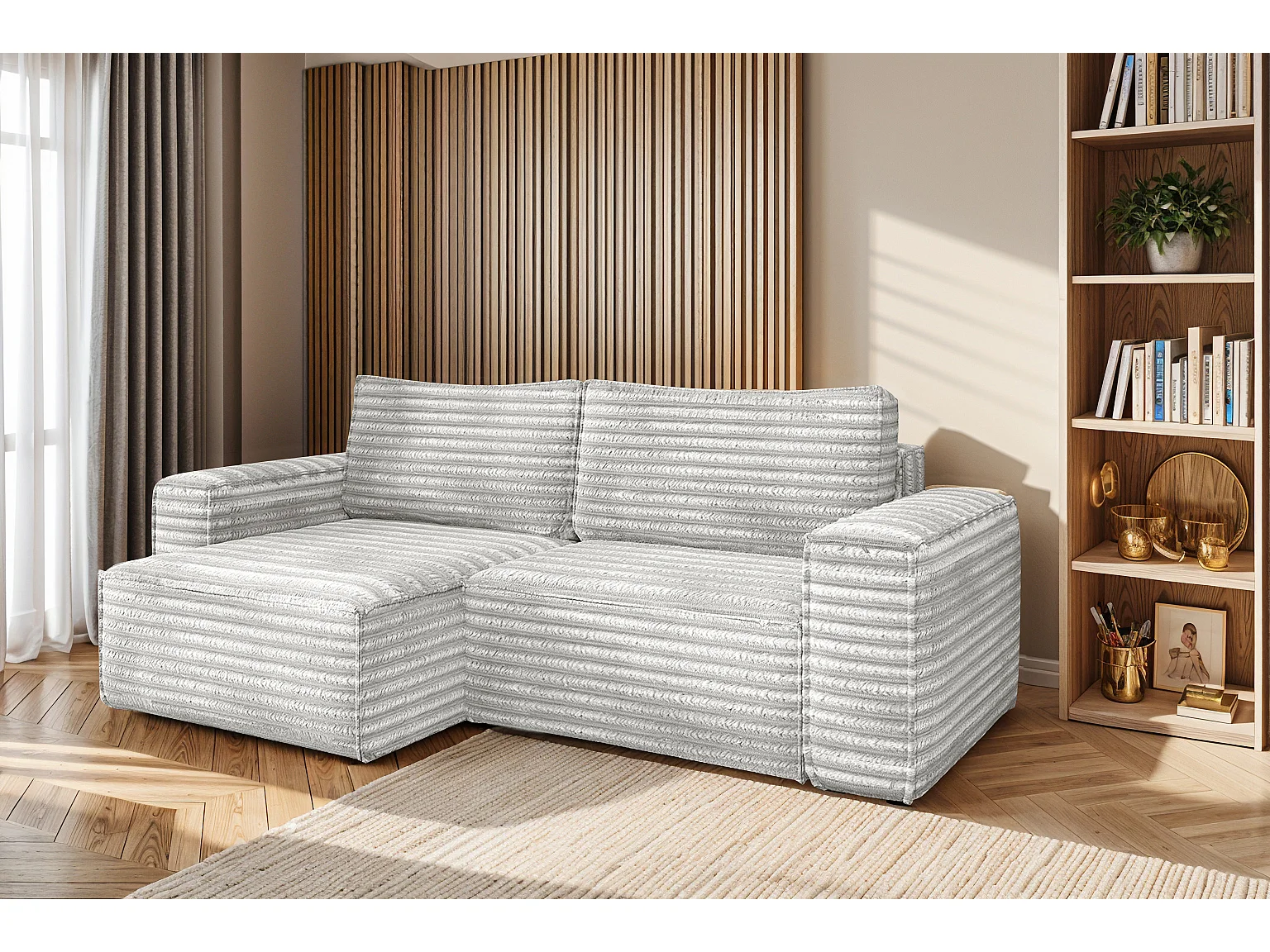L-förmiges Bohoo-Ecksofa mit Schlaffunktion, Stoff Velo, Hellgrau, Links