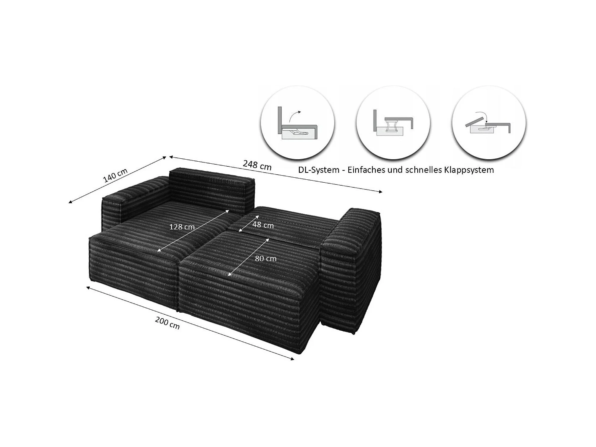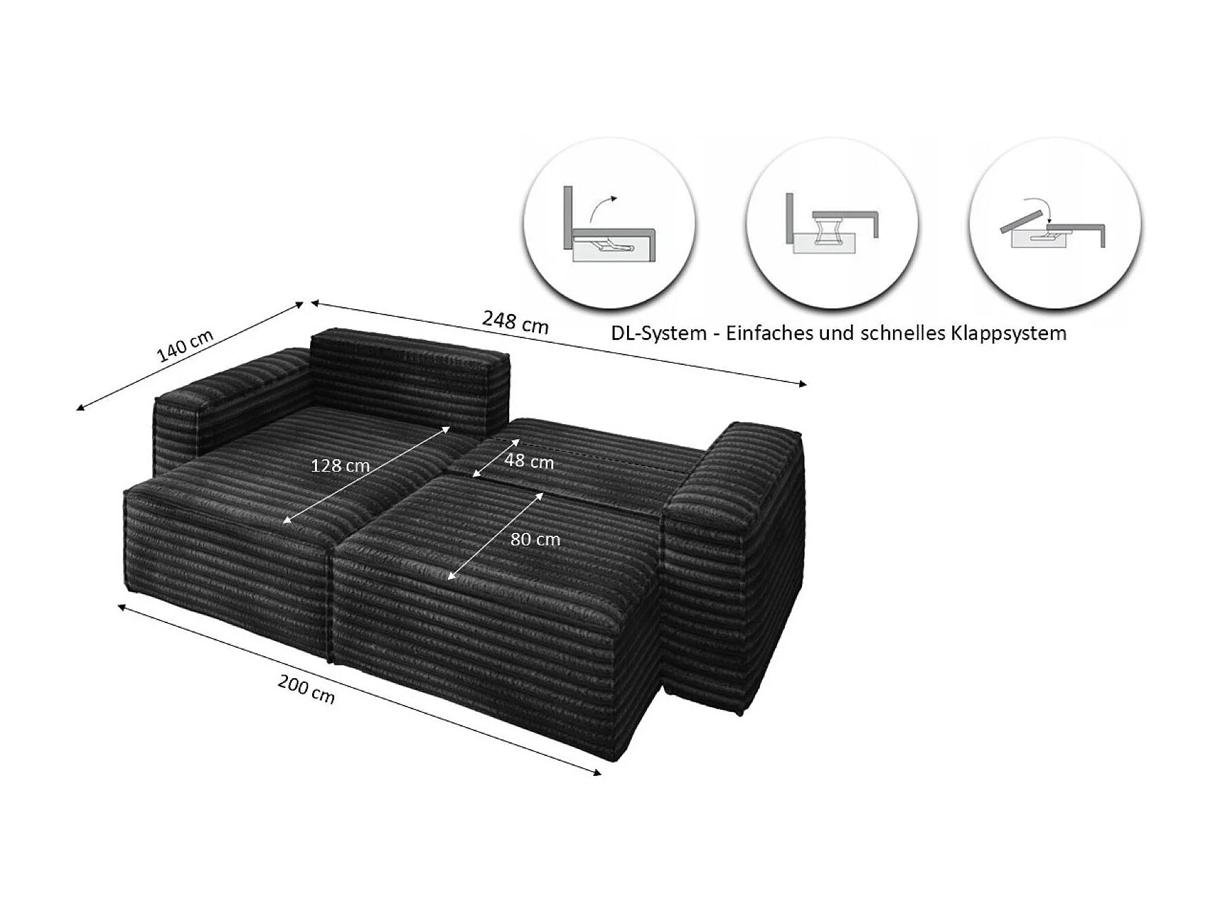 L-förmiges Bohoo-Ecksofa mit Schlaffunktion, Stoff Velo, Schwarz, Links