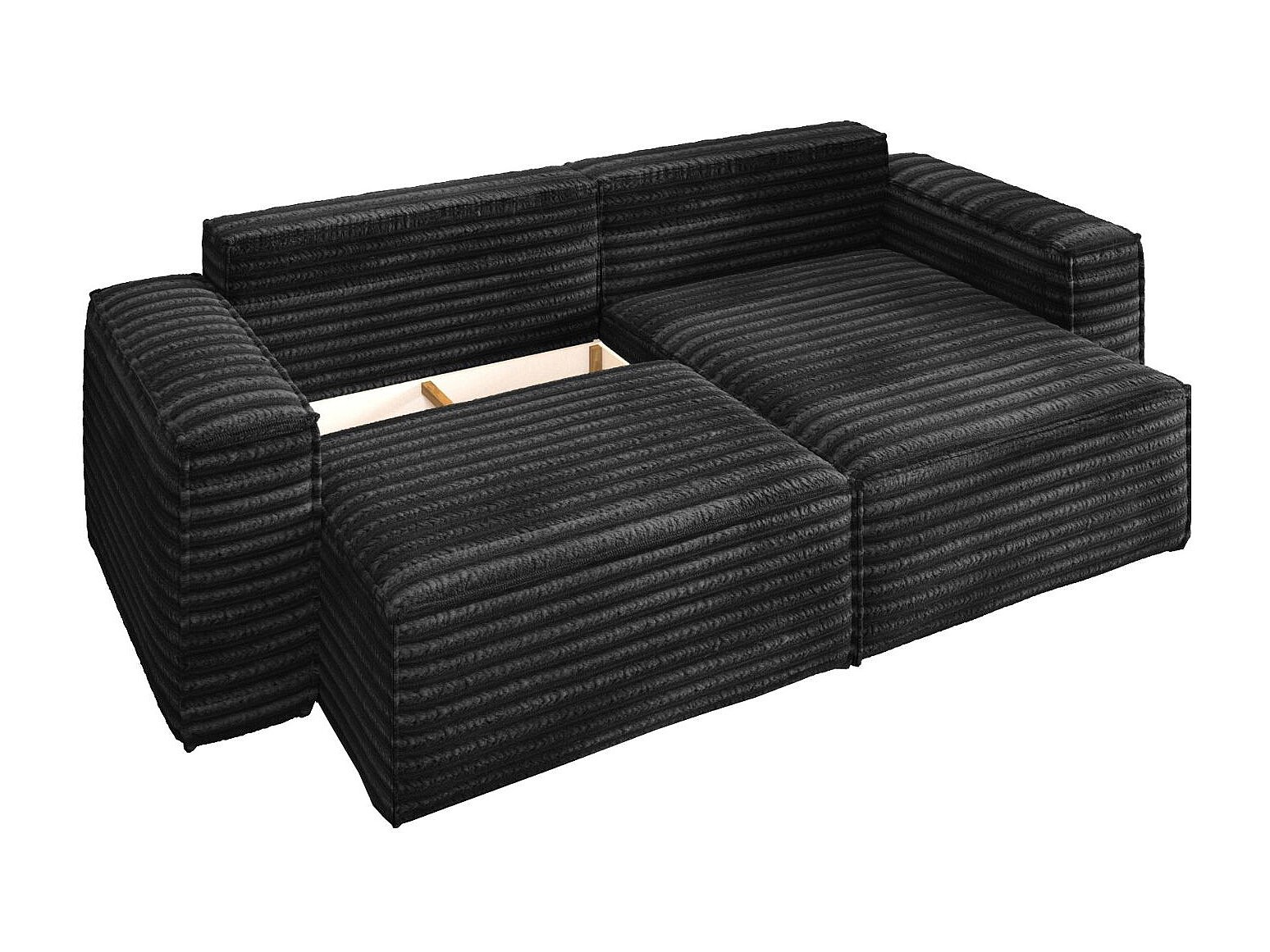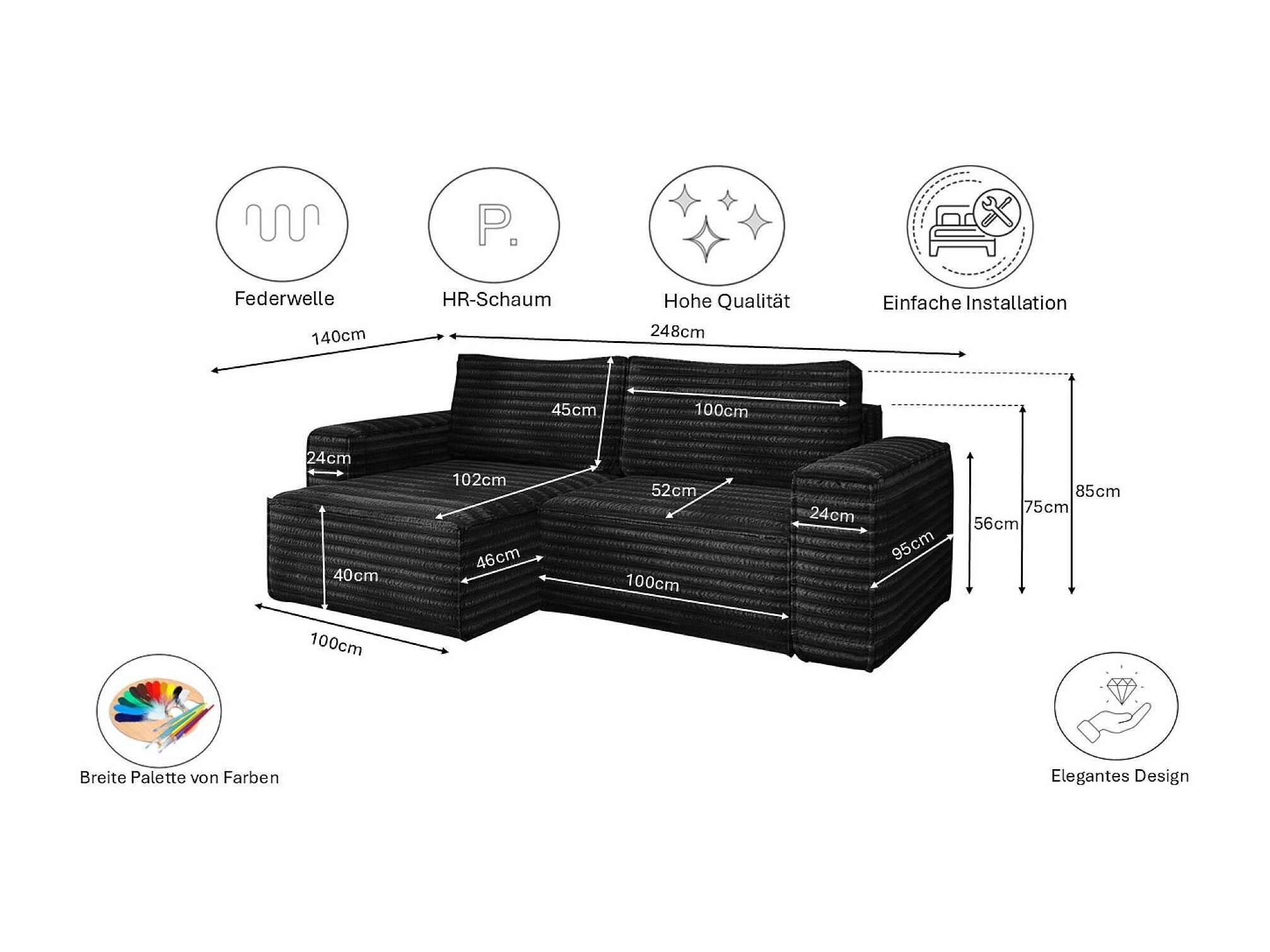 L-förmiges Bohoo-Ecksofa mit Schlaffunktion, Stoff Velo, Schwarz, Rechts