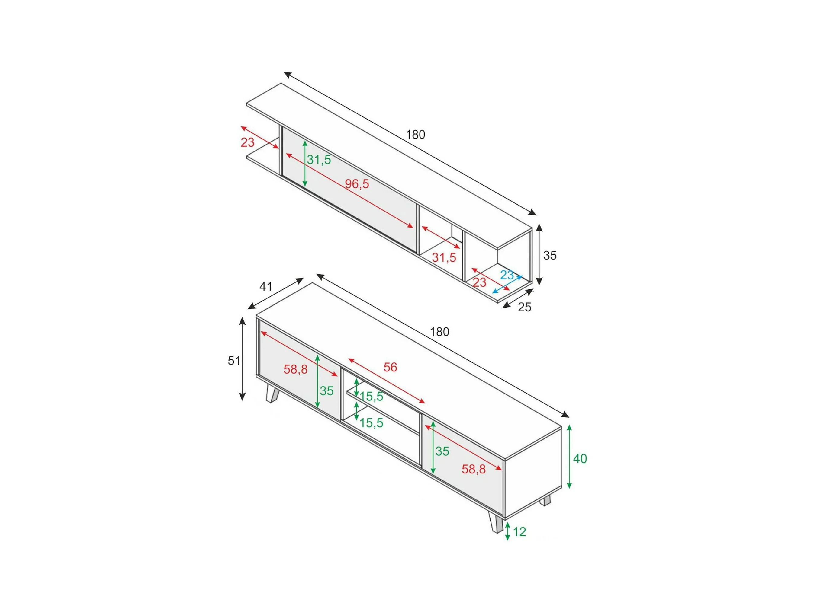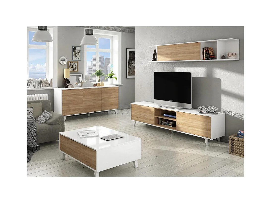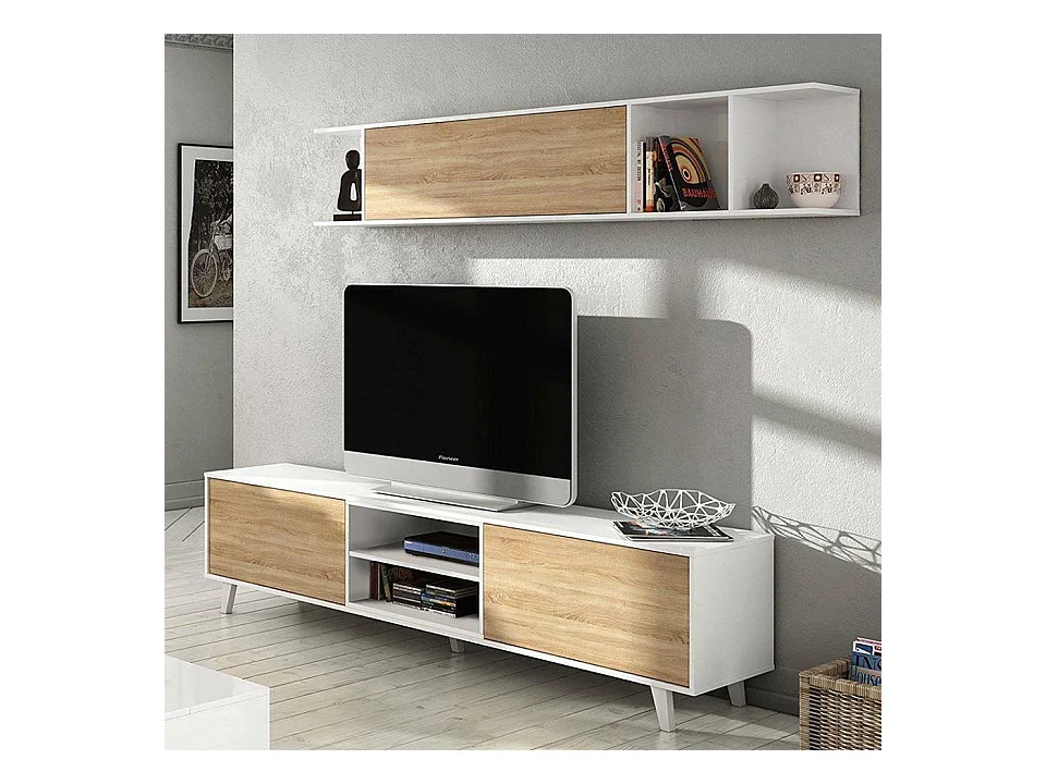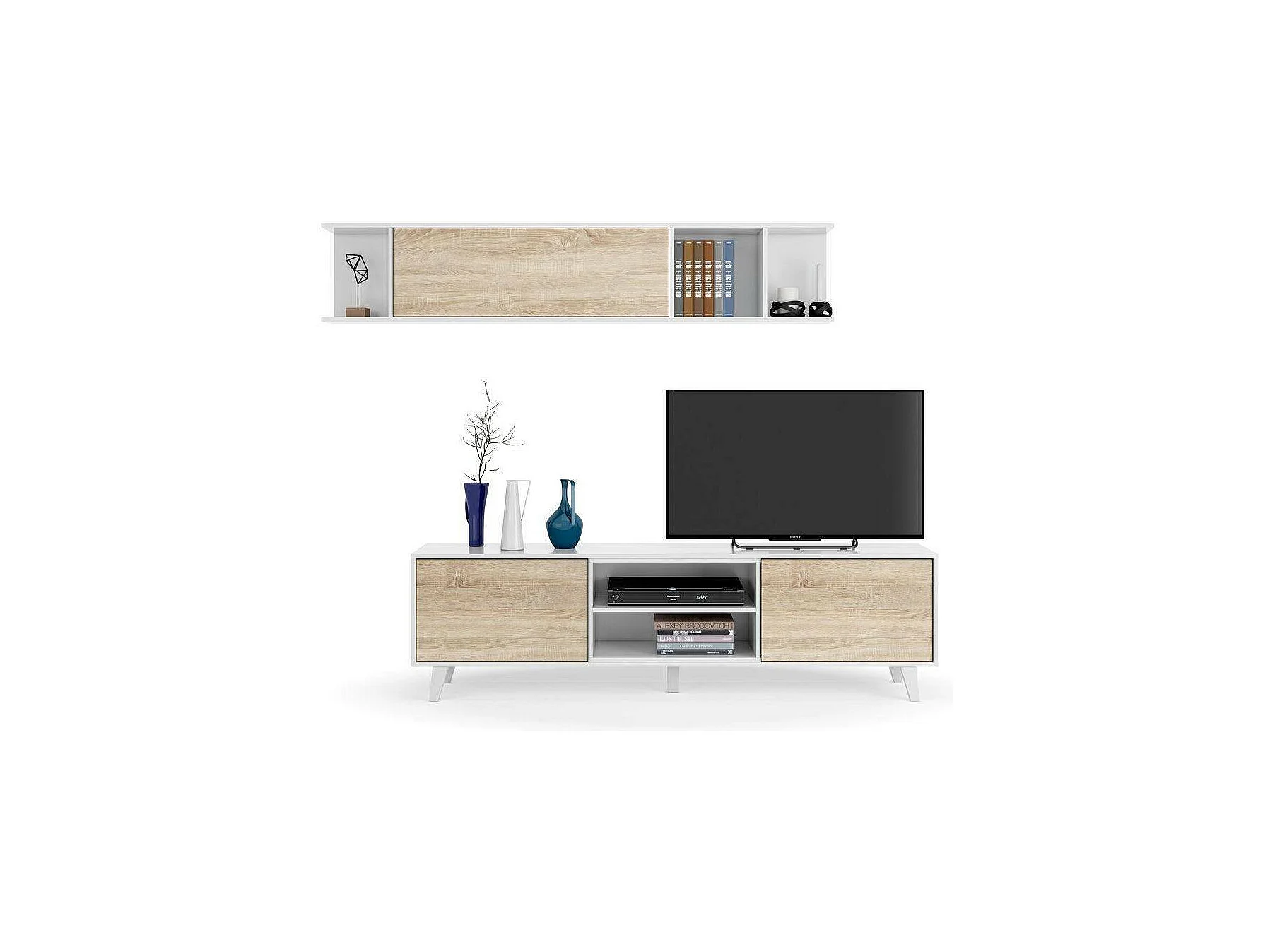 Lagerwand Darcole, TV-Ständer für Wohnzimmer, Wohnzimmerkomposition mit Wohnwand, 180x41h51 cm, Weiß und Eiche
