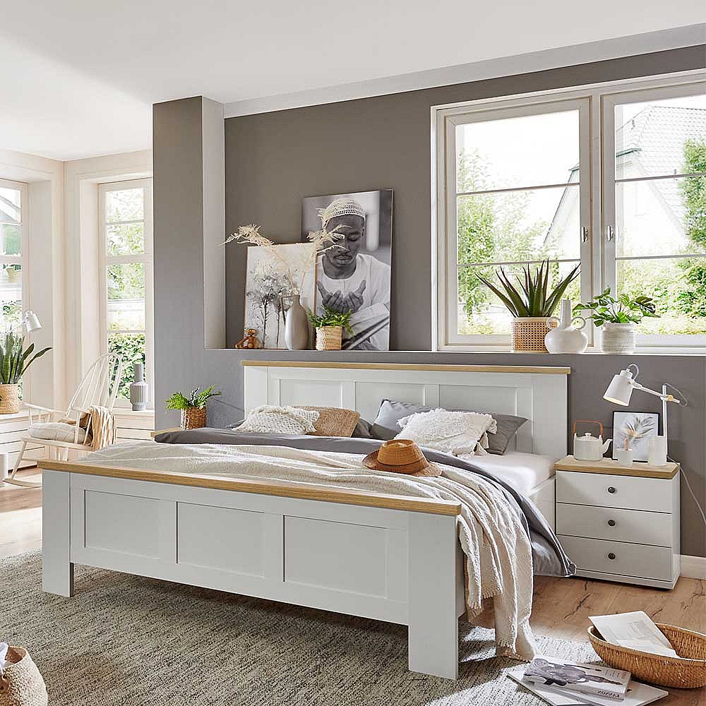 Landhaus Bett 160 cm in Wei� und Eiche Bianco Made in Germany