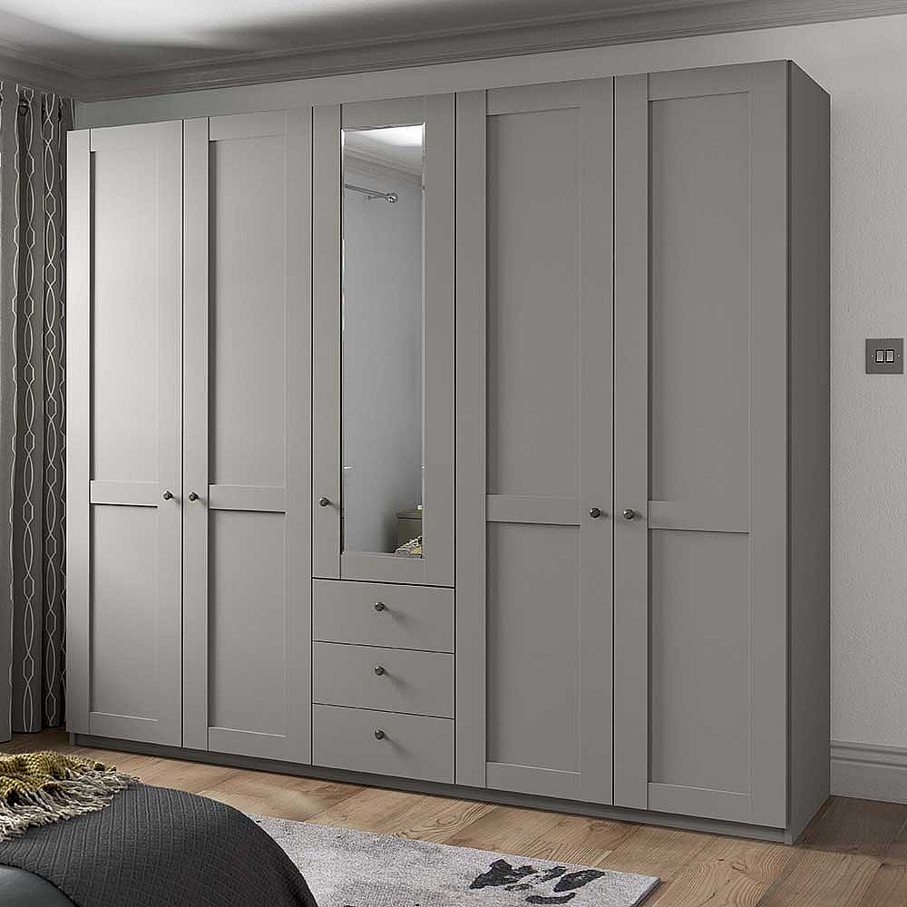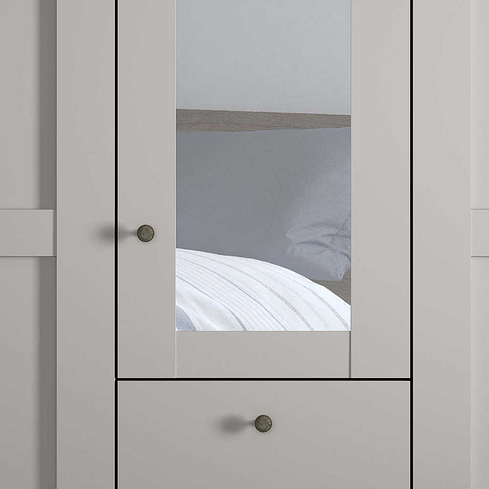 Landhaus Design Kleiderschrank in Hellgrau drei Schubladen