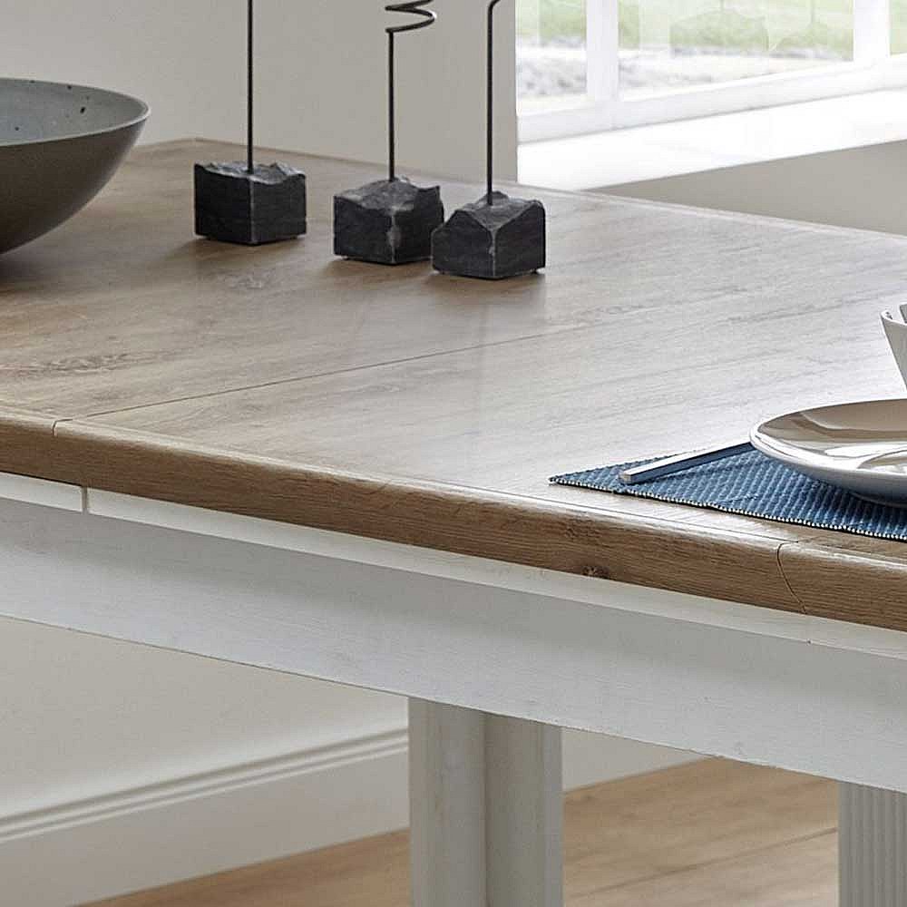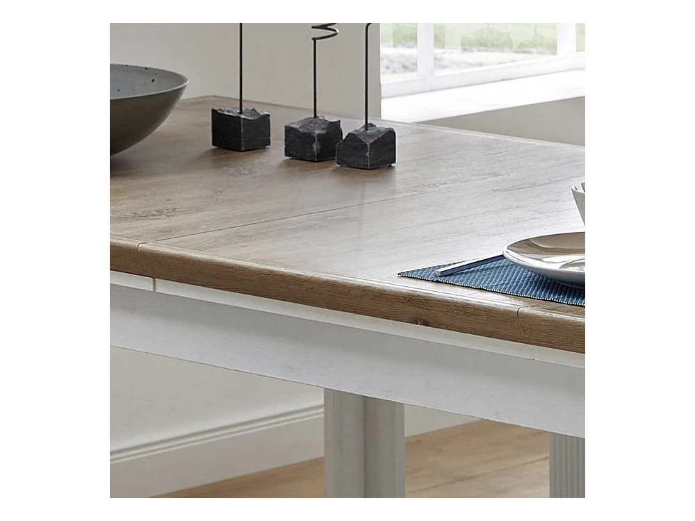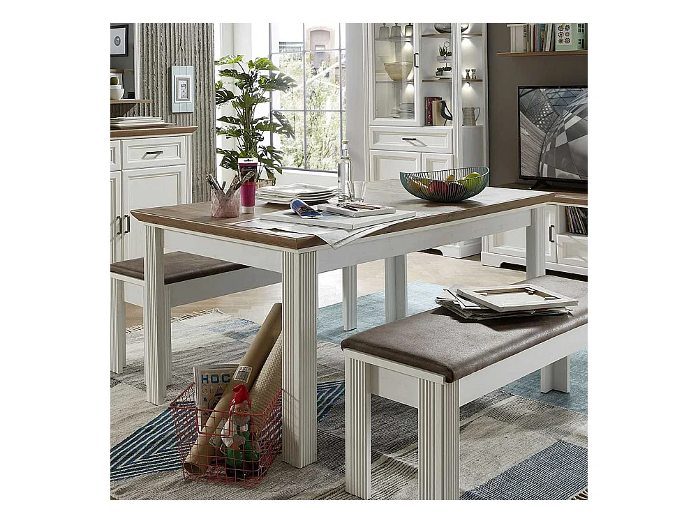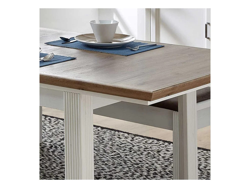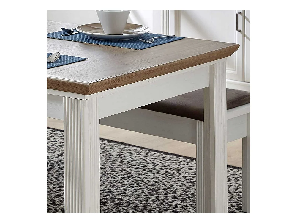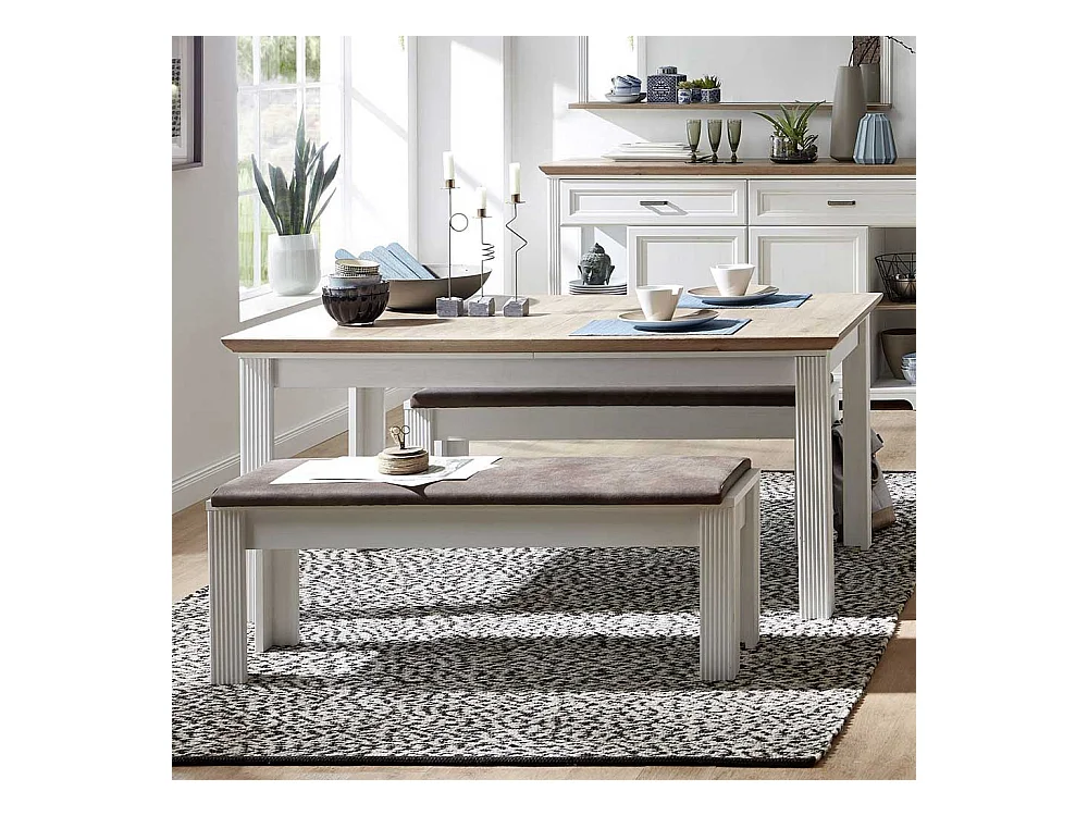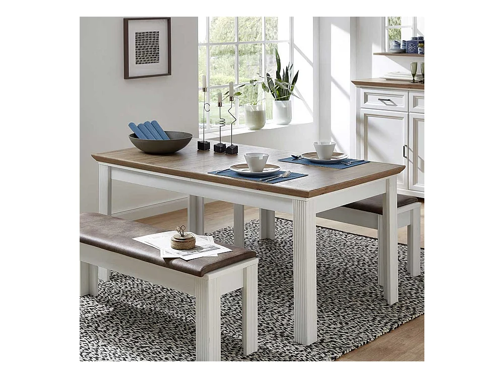 Landhaus Essgruppe in Weiß und Eichefarben Bänken