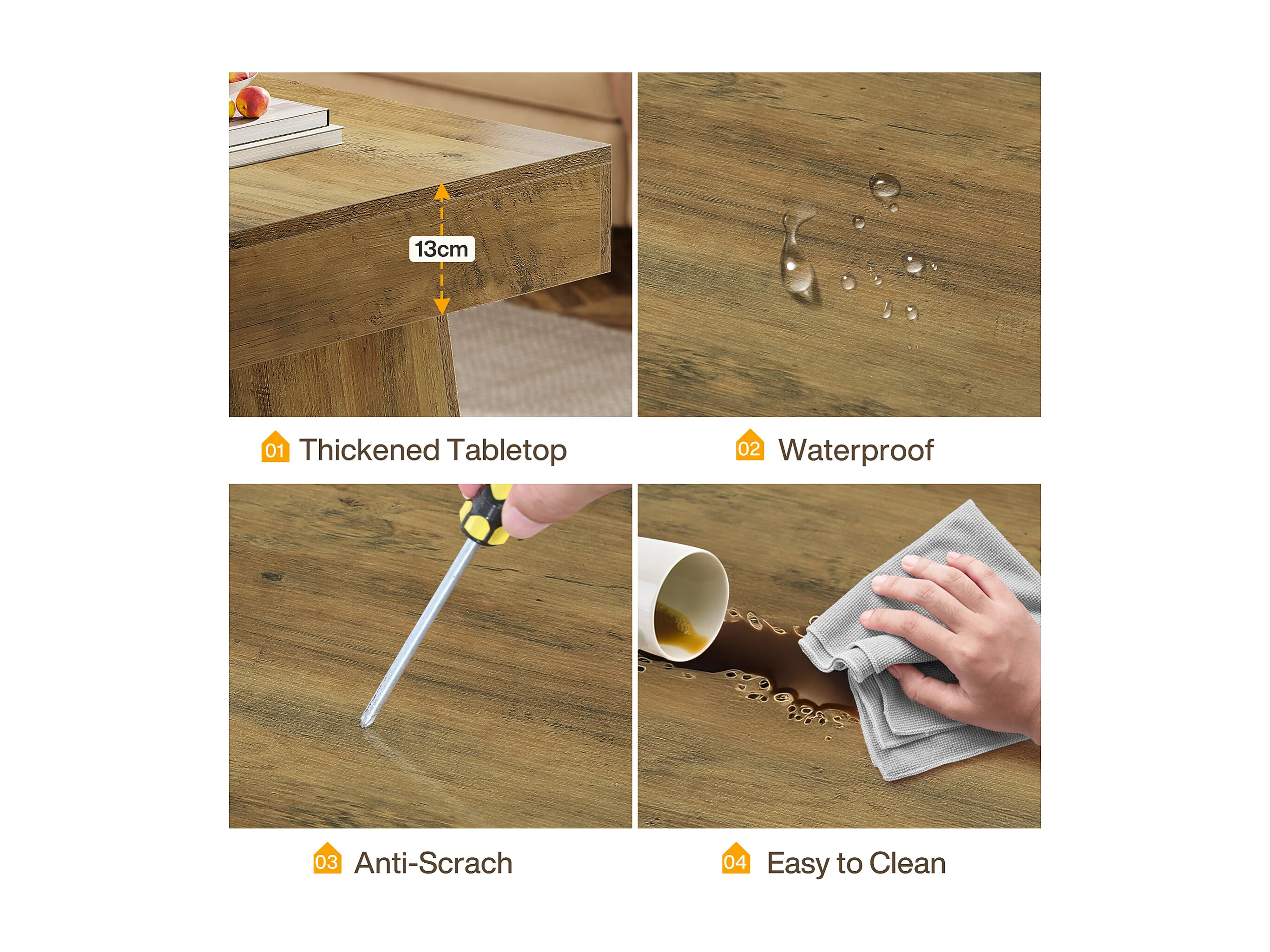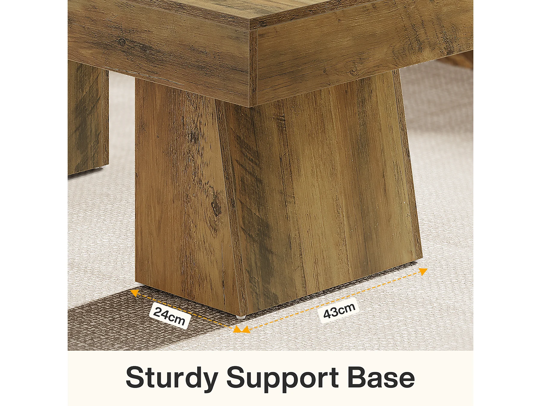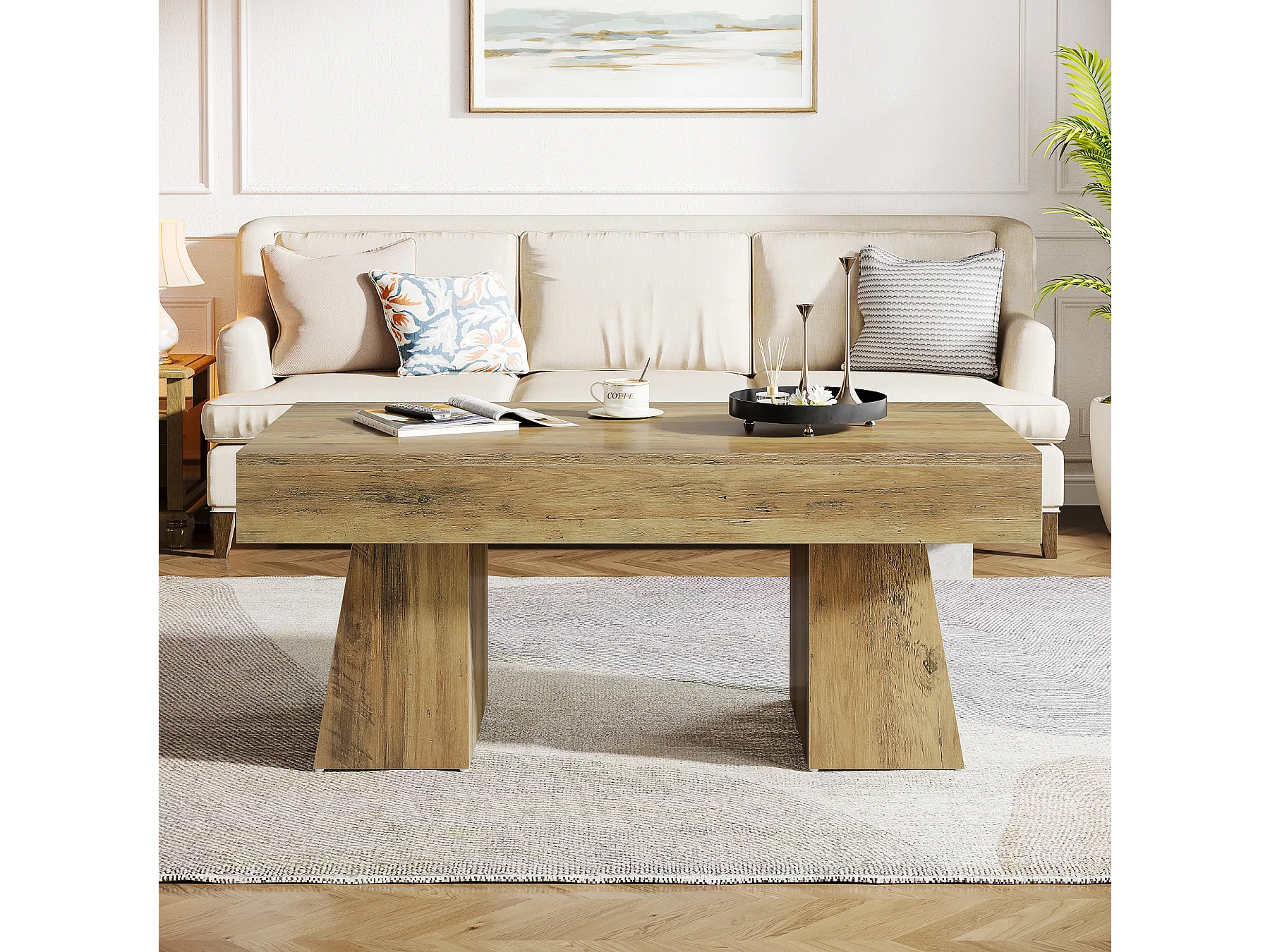 Landhaus-Kaffeetisch, 120 cm langes rechteckiges Akzent-Zentertable mit dickem Sockel, modernes niedriges Cocktail-Tee-Möbelstück