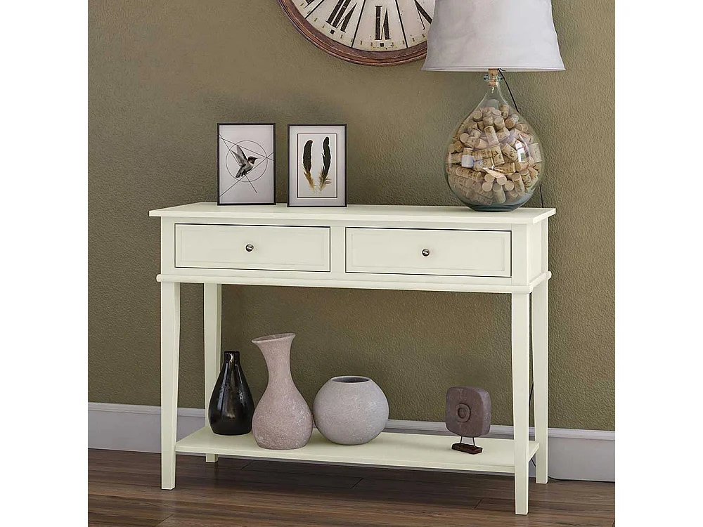 Landhaus Konsolen Tisch in Cremefarben zwei Schubladen