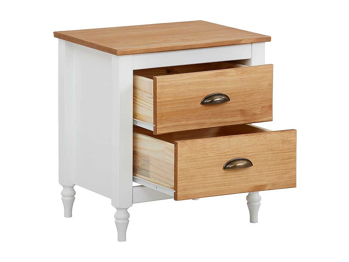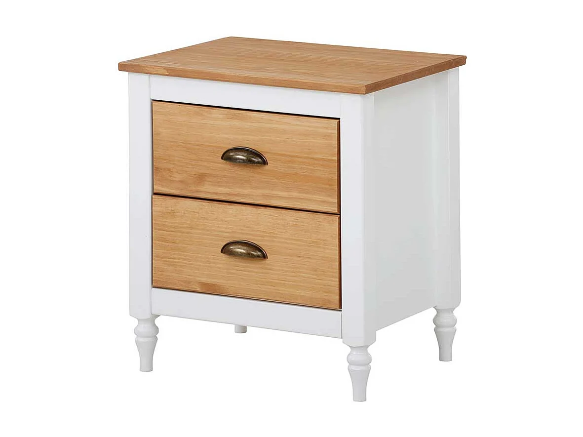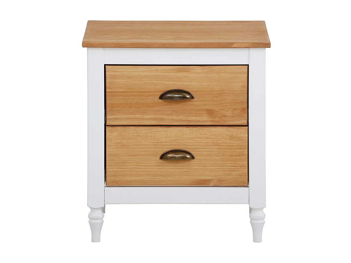 Landhaus Nachtkonsole mit zwei Schubladen Kieferfarben und Weiß