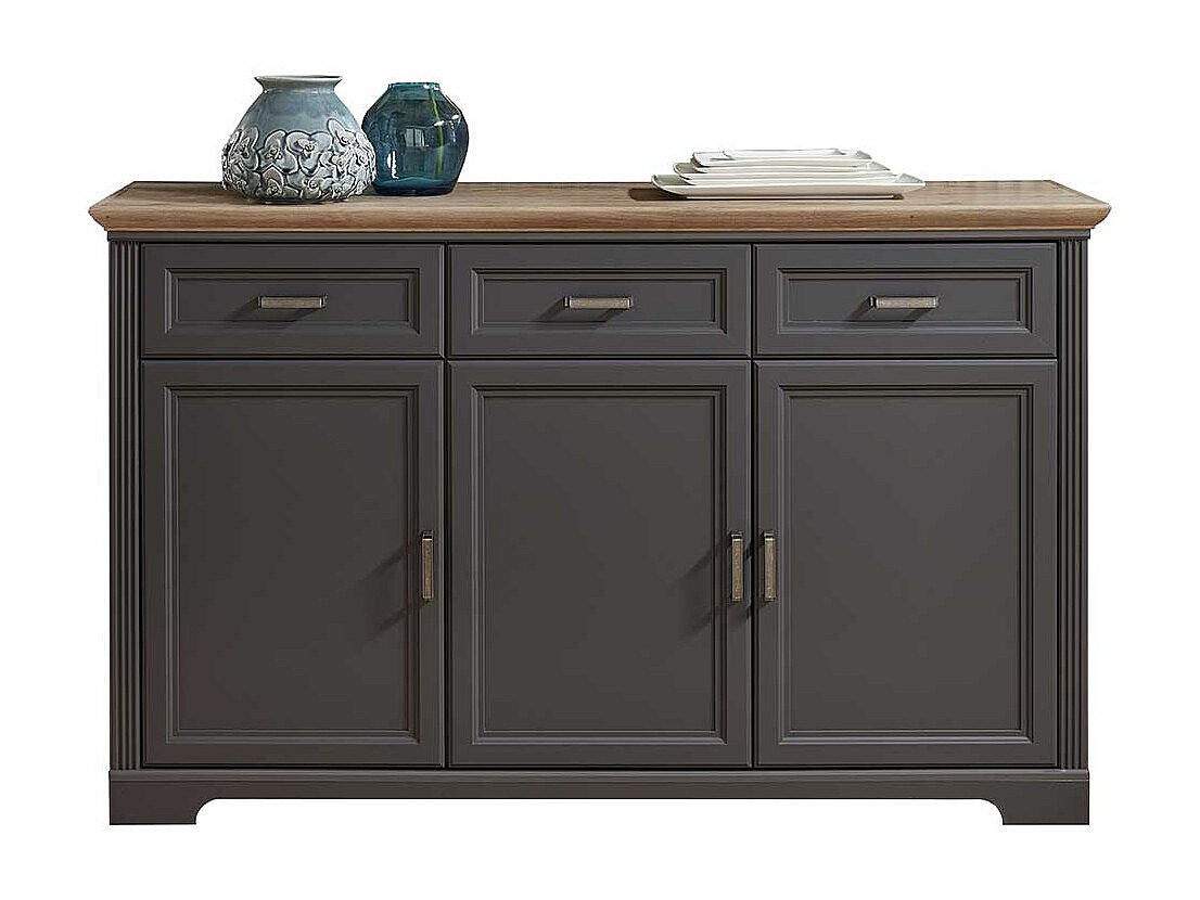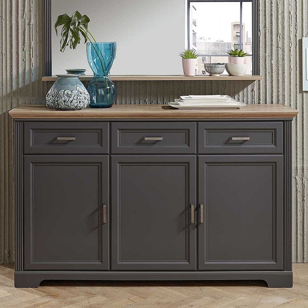 Landhaus Sideboard in Dunkelgrau Eichefarben