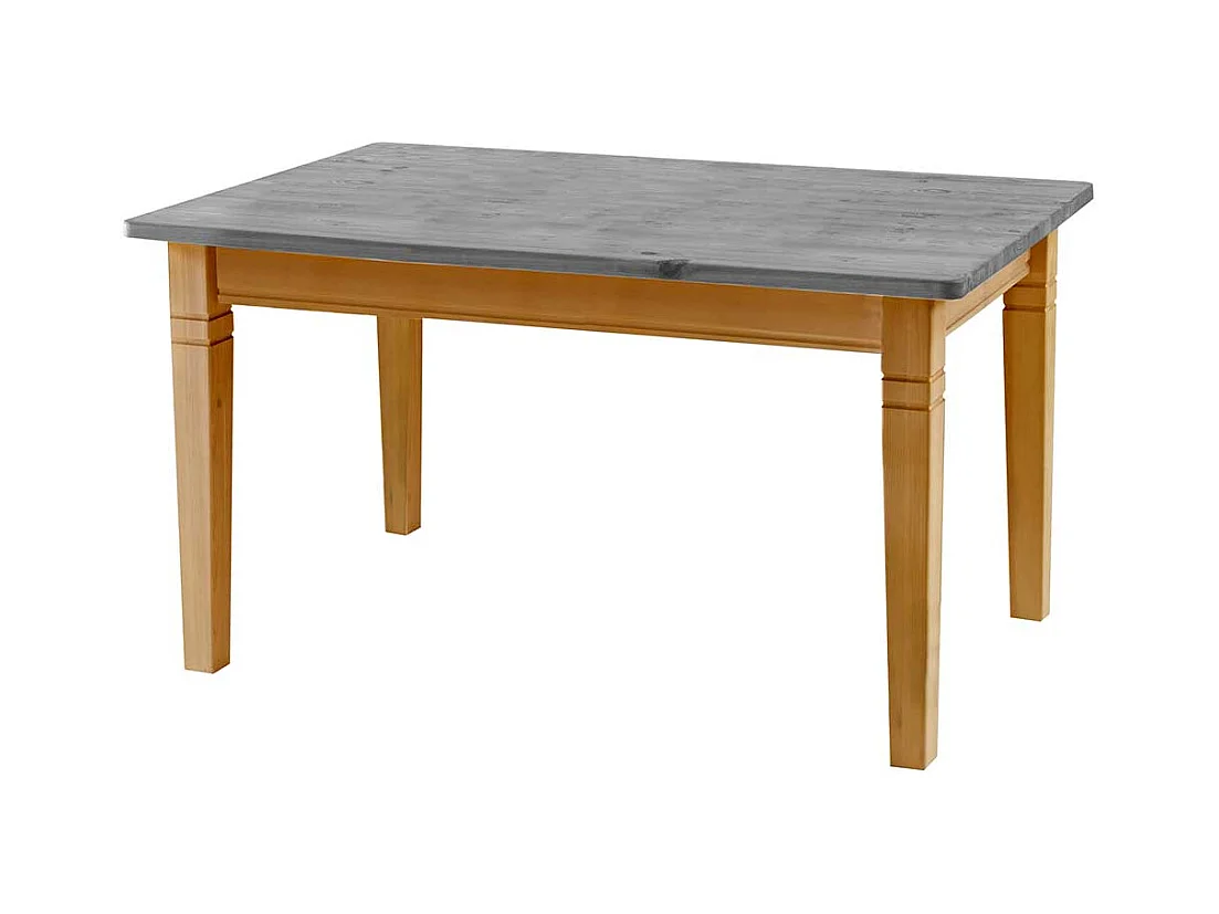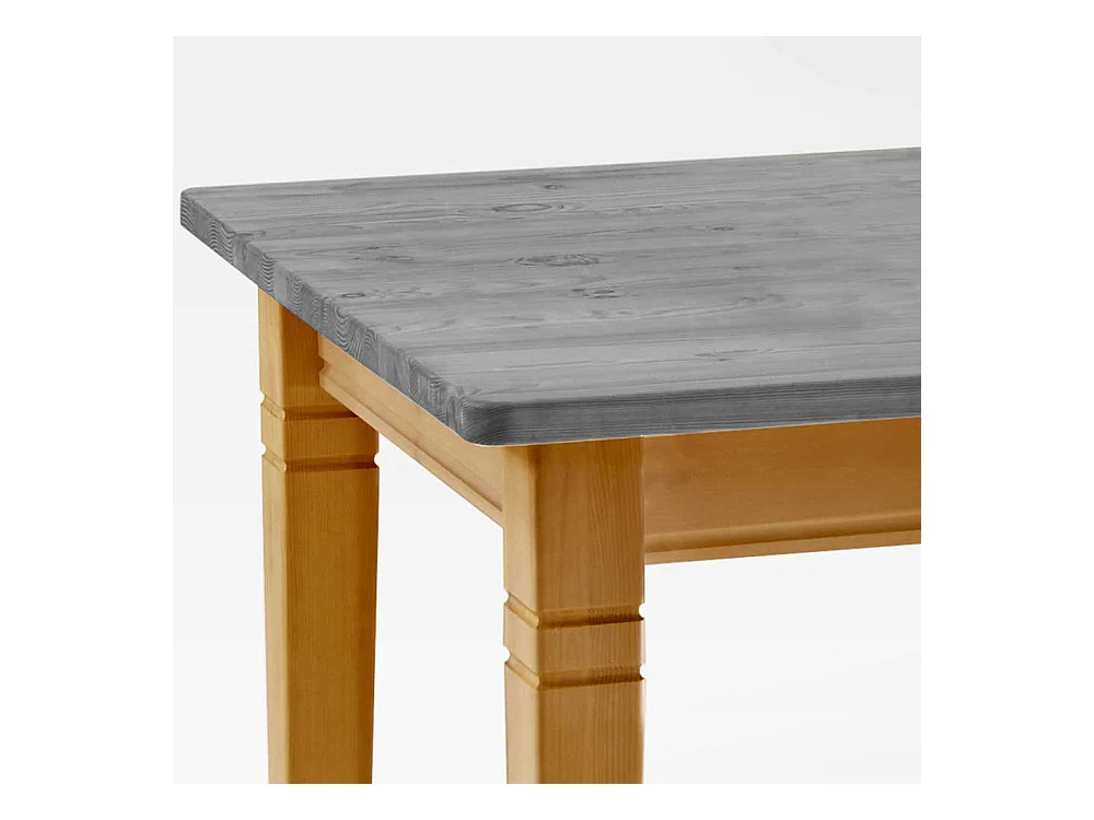 Landhaus Tisch aus Kiefer Massivholz grauer Tischplatte