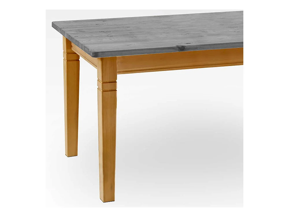 Landhaus Tisch aus Kiefer Massivholz grauer Tischplatte