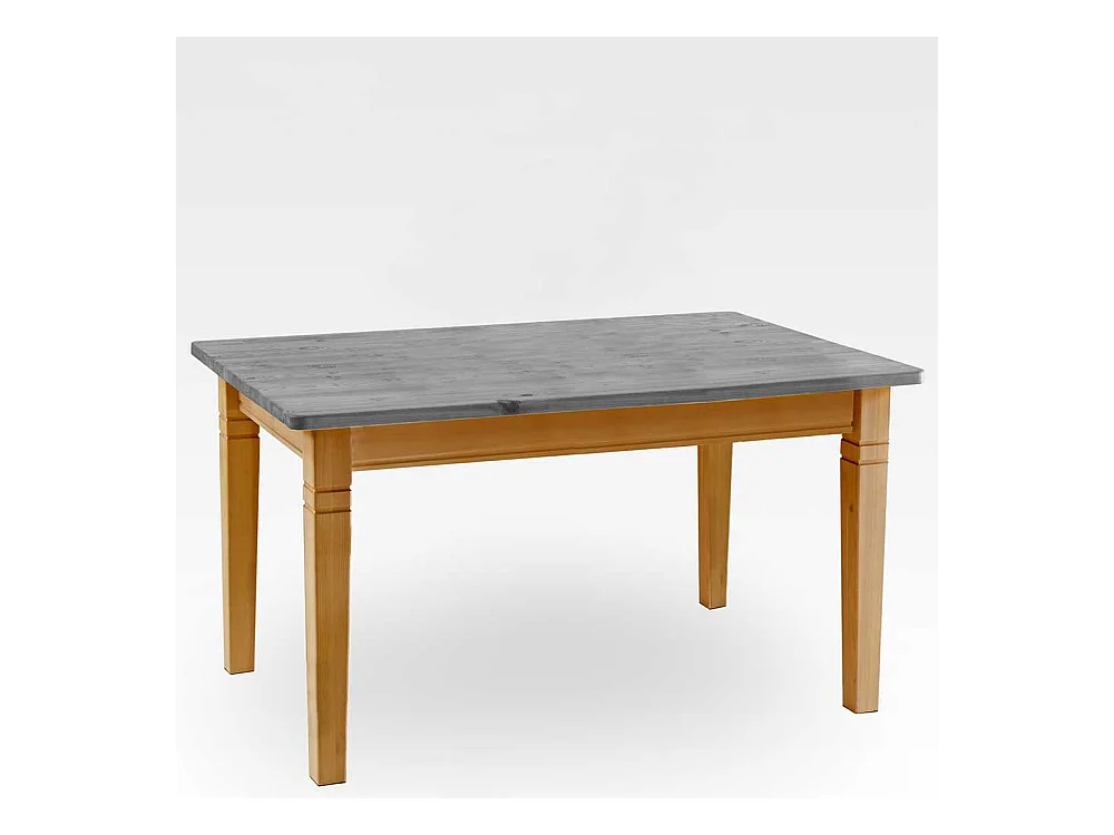 Landhaus Tisch aus Kiefer Massivholz grauer Tischplatte