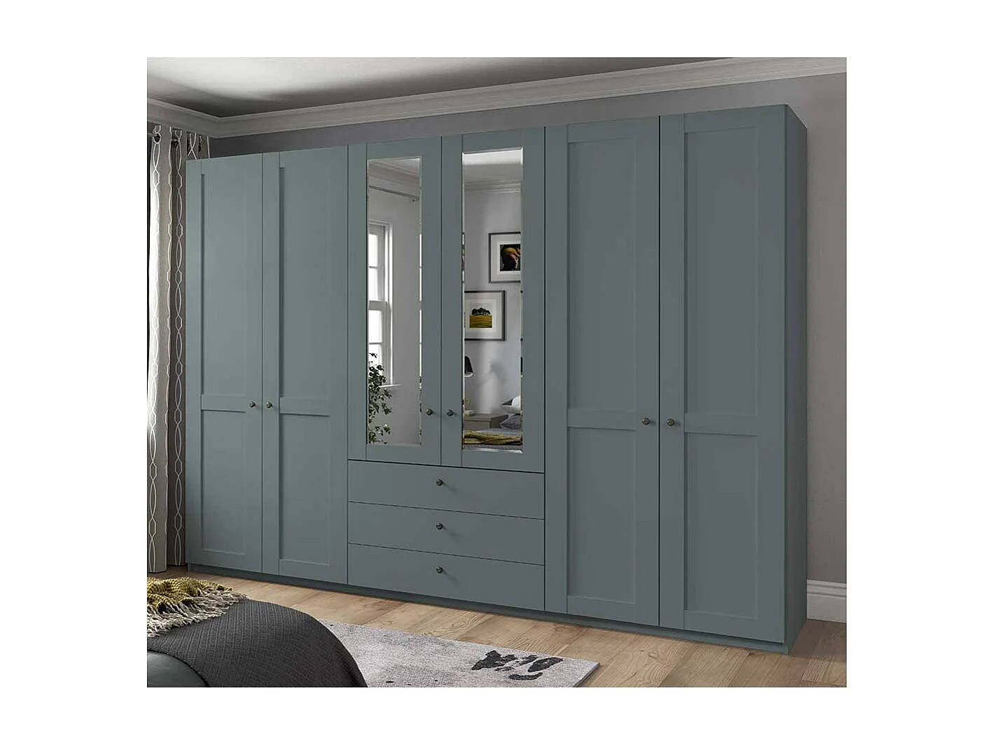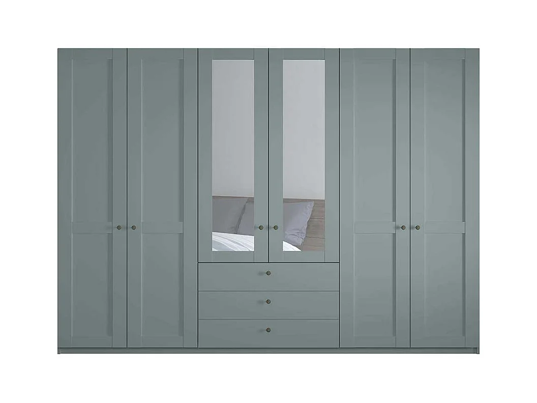 Landhausschlafzimmerschrank in Graugrün drei Schubladen