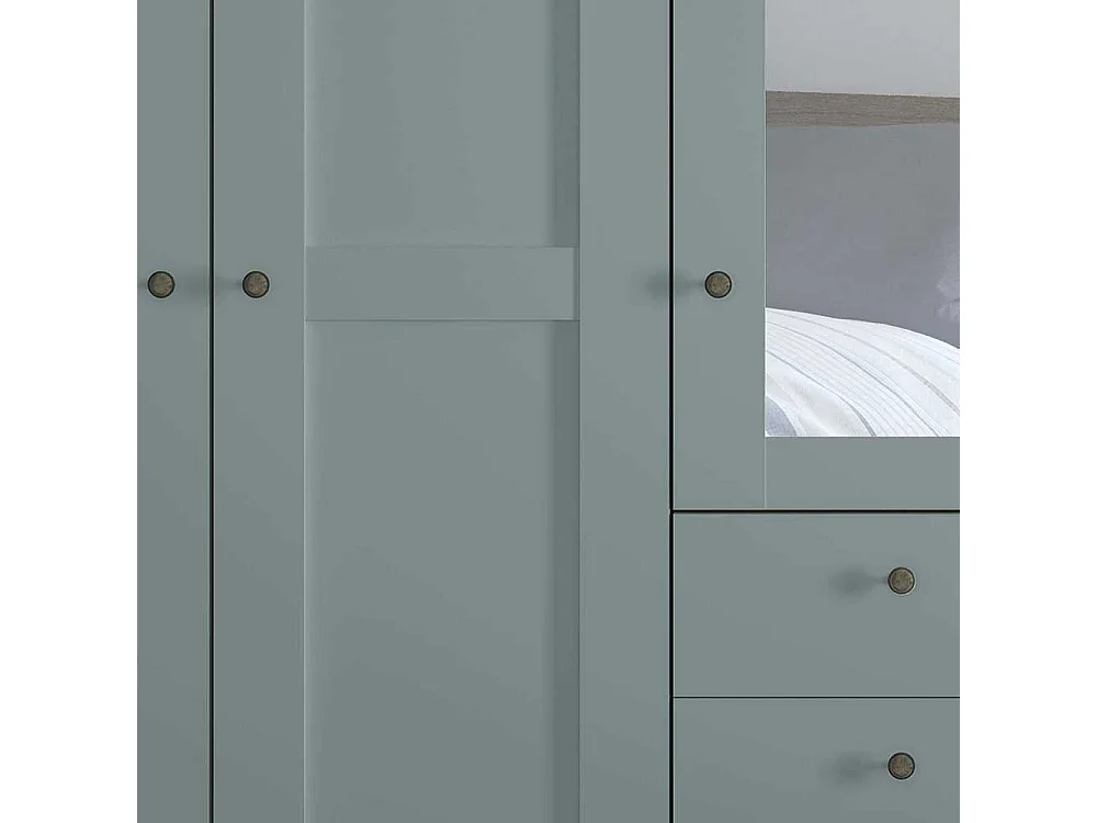 Landhausschlafzimmerschrank mit Spiegel in Graugrün 250 cm breit