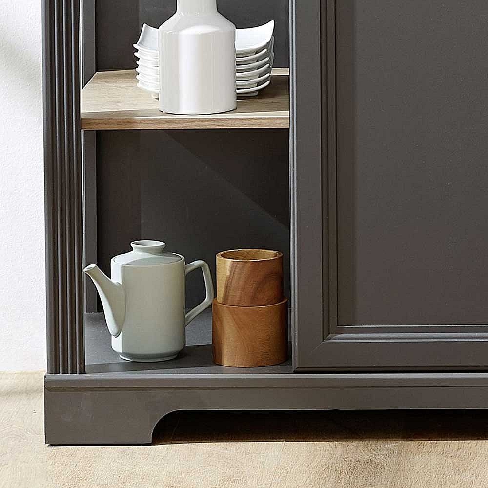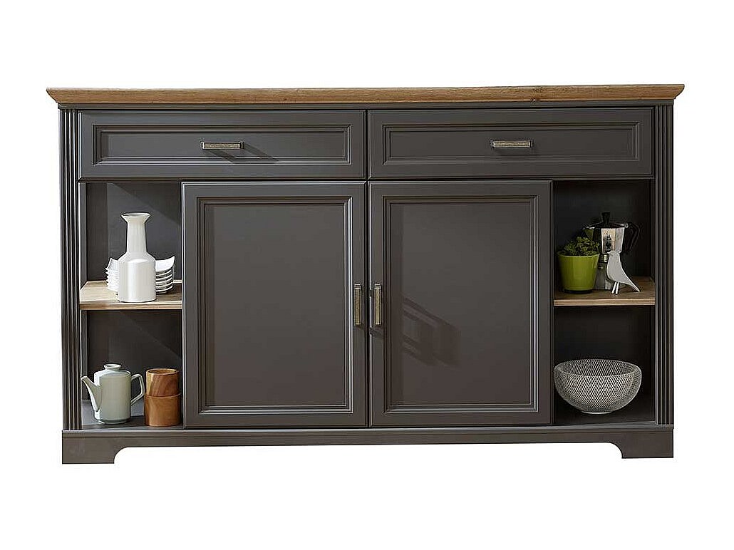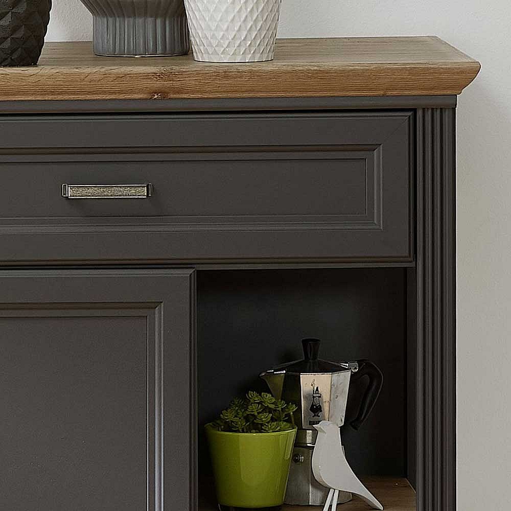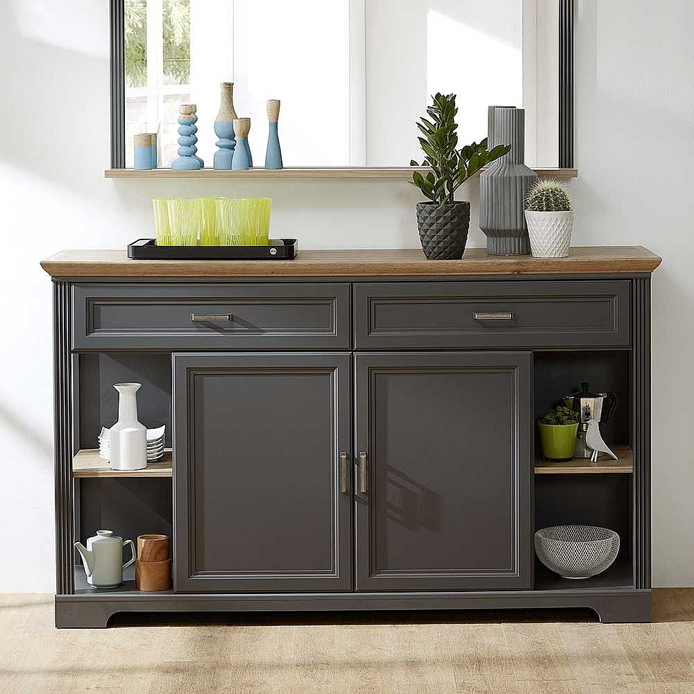 Landhaussideboard in Dunkelgrau und Eichefarben