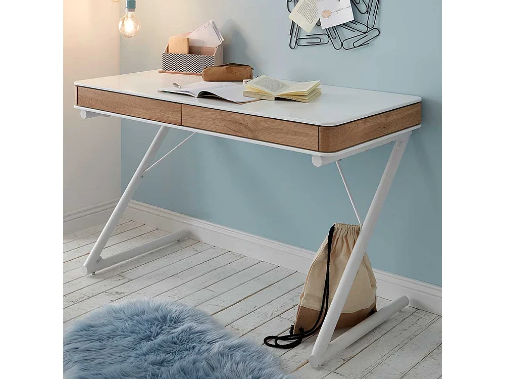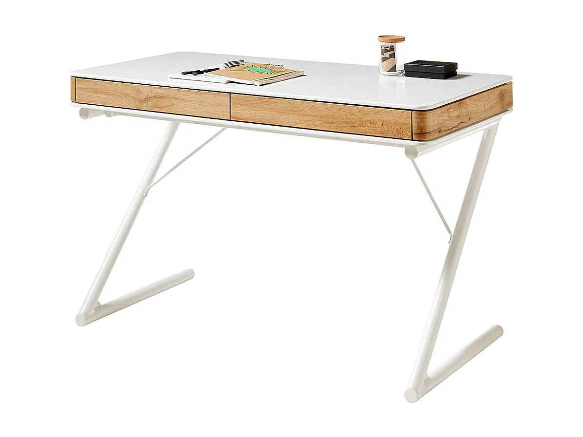 Laptopschreibtisch in Wei� und Eiche Optik 120 cm breit