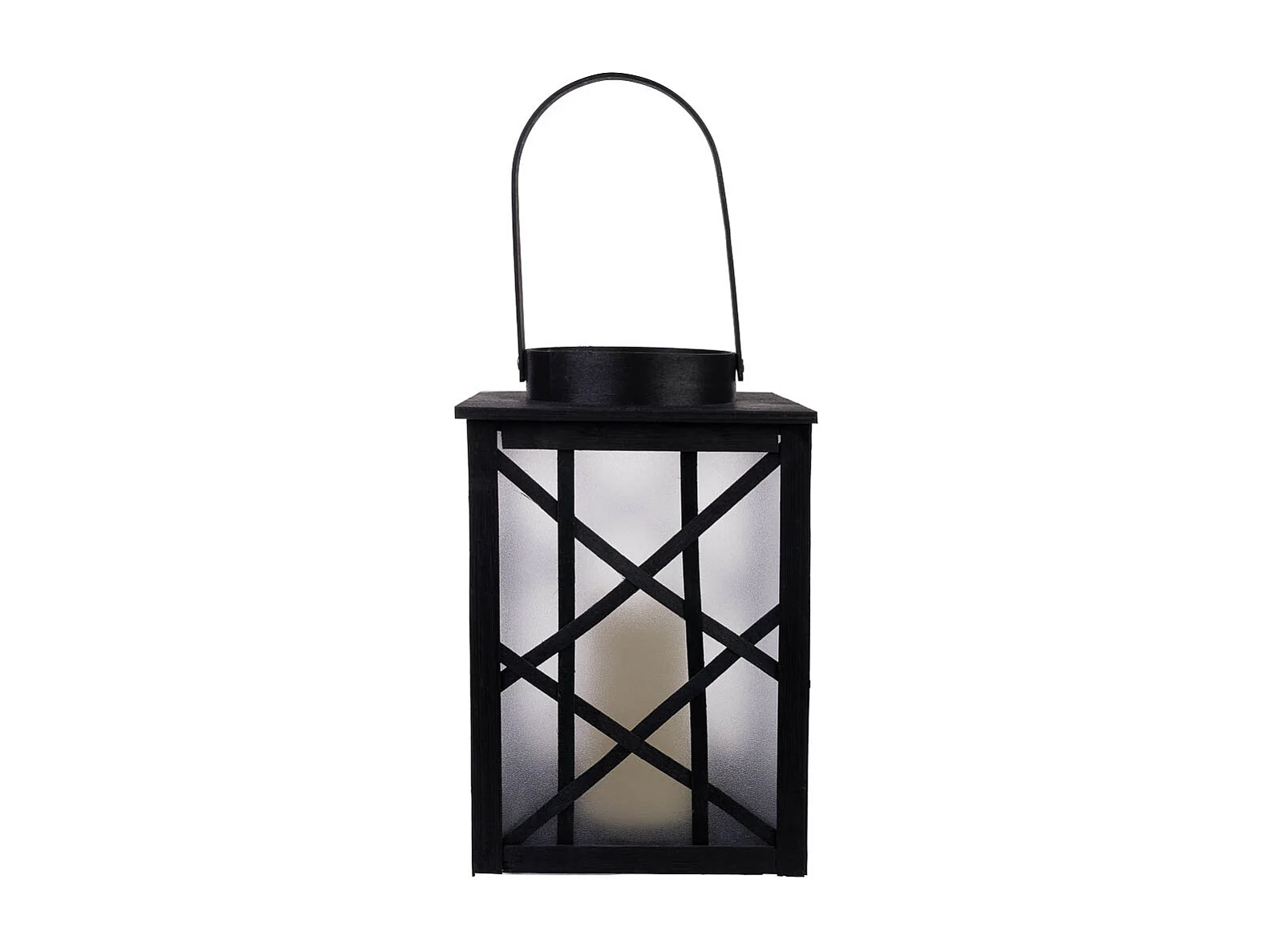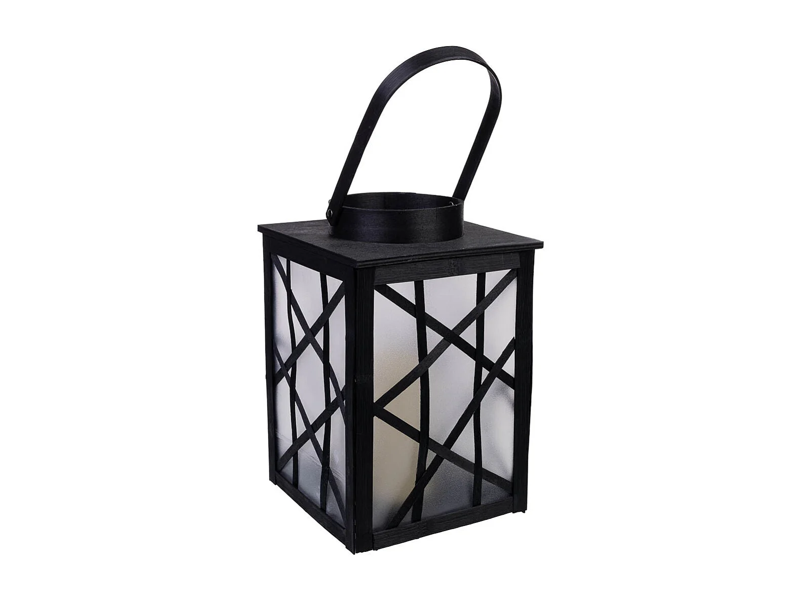 Laterne aus Kunststoff und Holz mit batteriebetriebener Kerze D19,5x31,5/46h cm