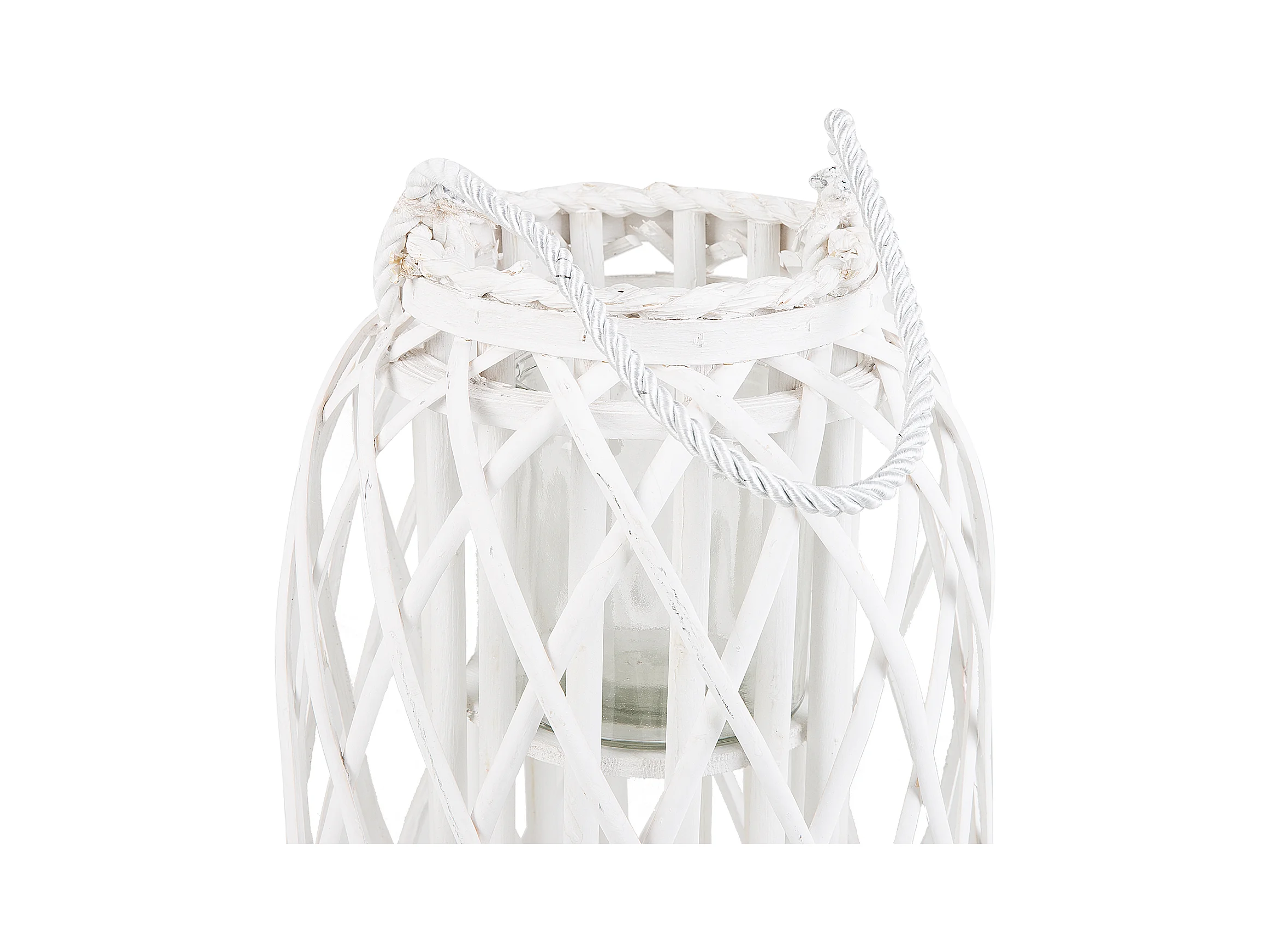 Dekolaterne Weidenholz weiß 30 cm mit Kerzenhalter Griff Modern dekorativer Kerzenständer Mauritius