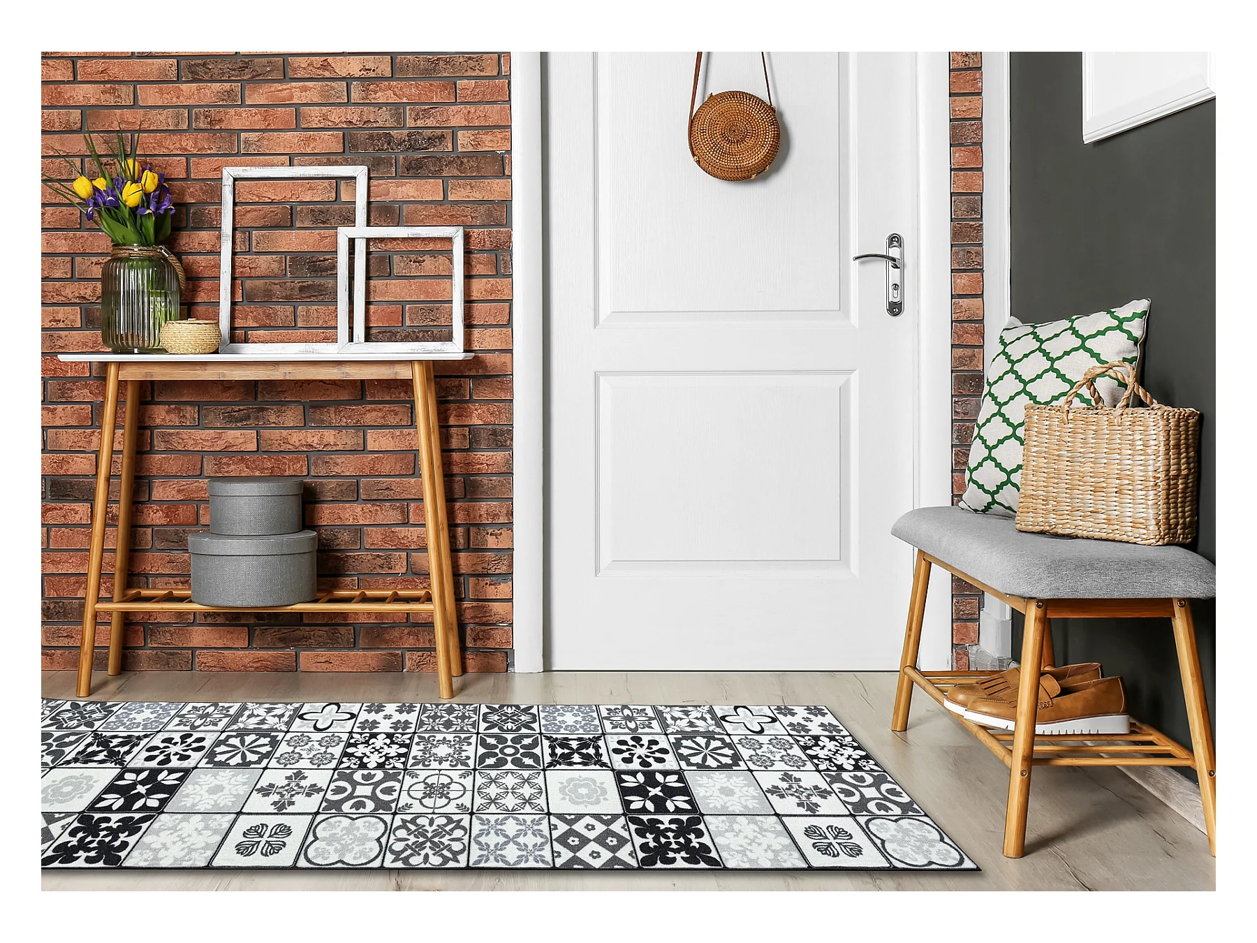 Läufer Antirutsch AZULEJO PATCHWORK, LISSABONFLIESEN grau / schwarz 80x720 cm