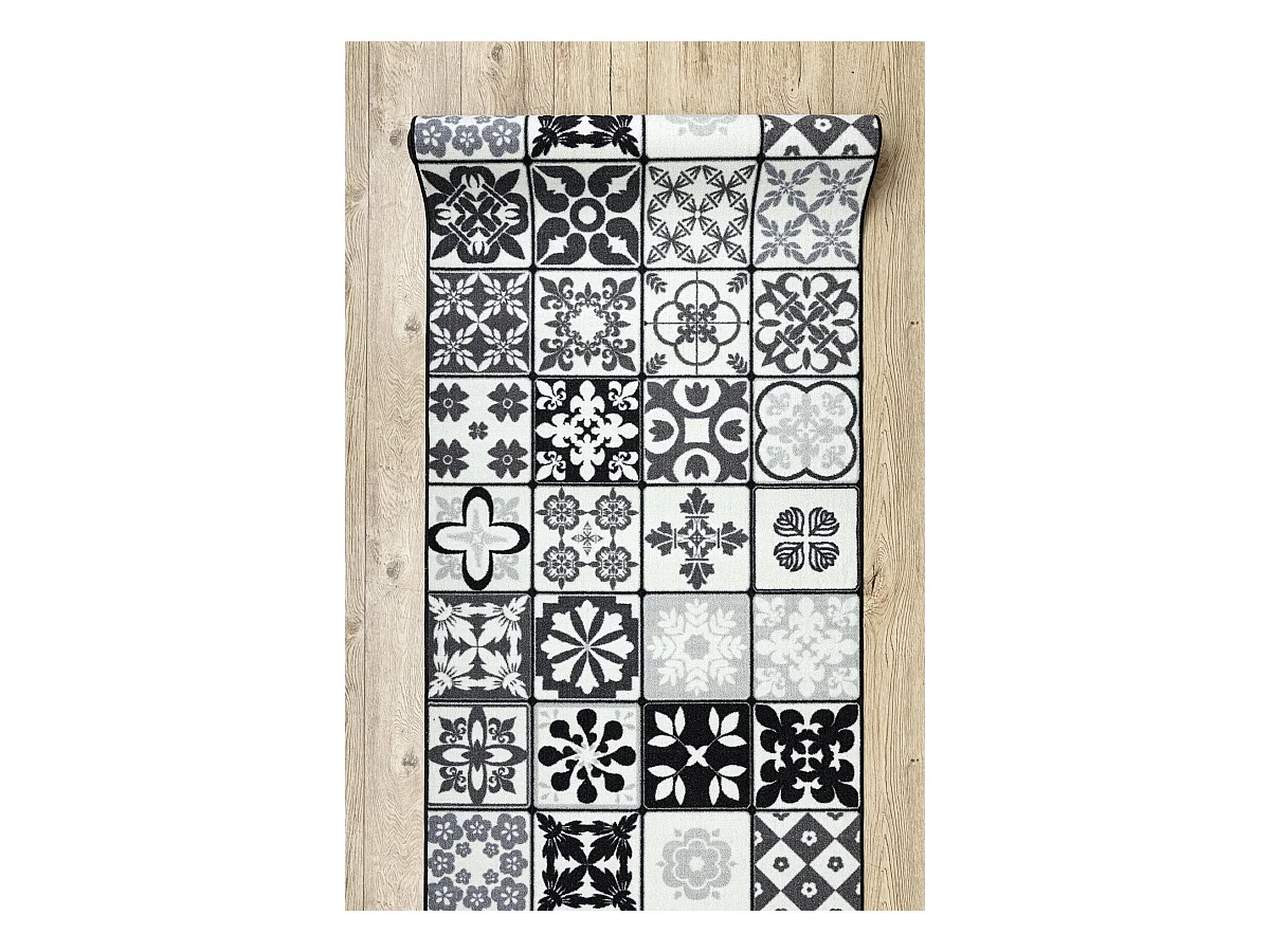 Läufer Antirutsch AZULEJO PATCHWORK, LISSABONFLIESEN grau / schwarz 80x760 cm
