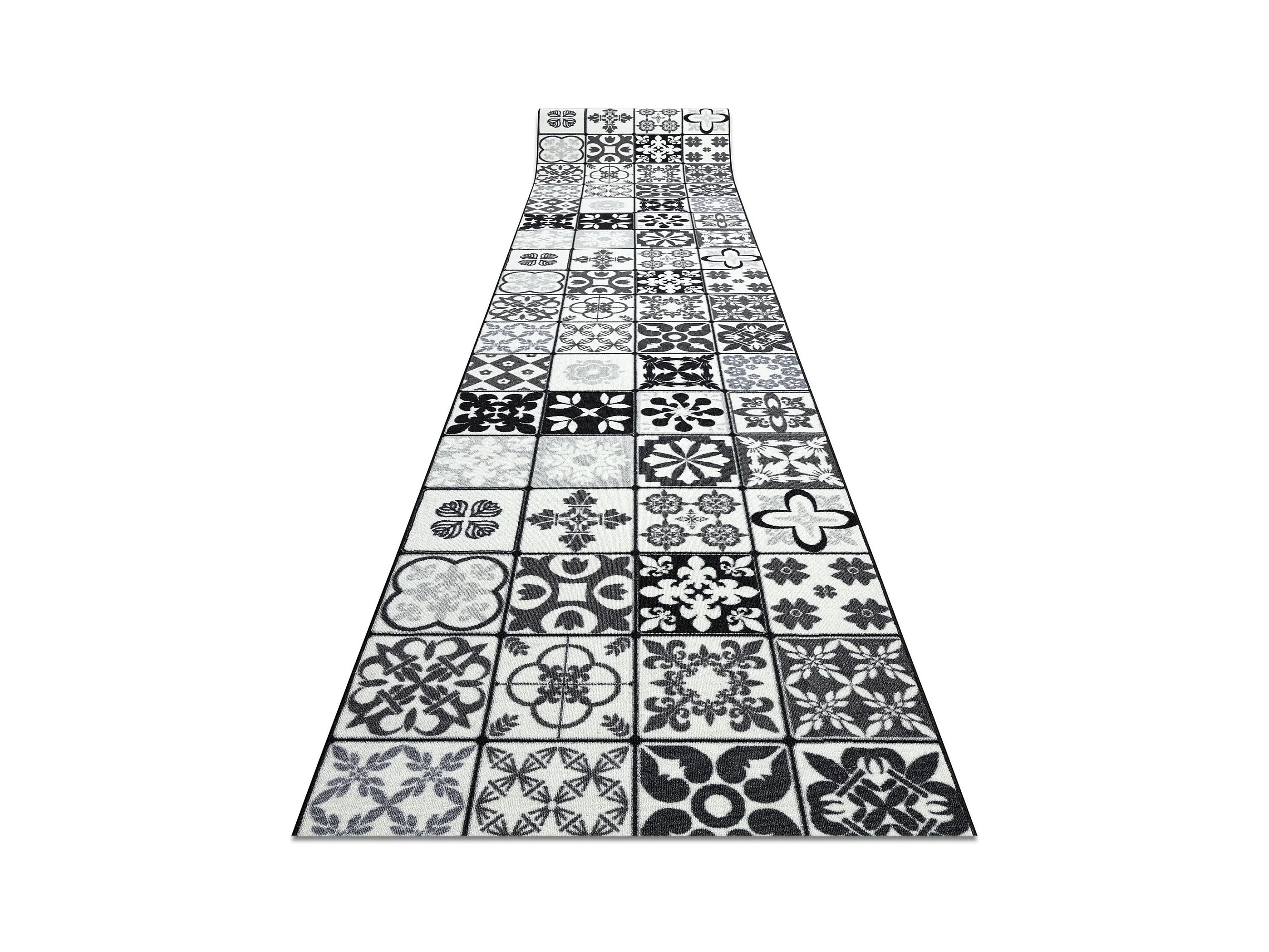 Läufer Antirutsch AZULEJO PATCHWORK, LISSABONFLIESEN grau / schwarz 80x800 cm