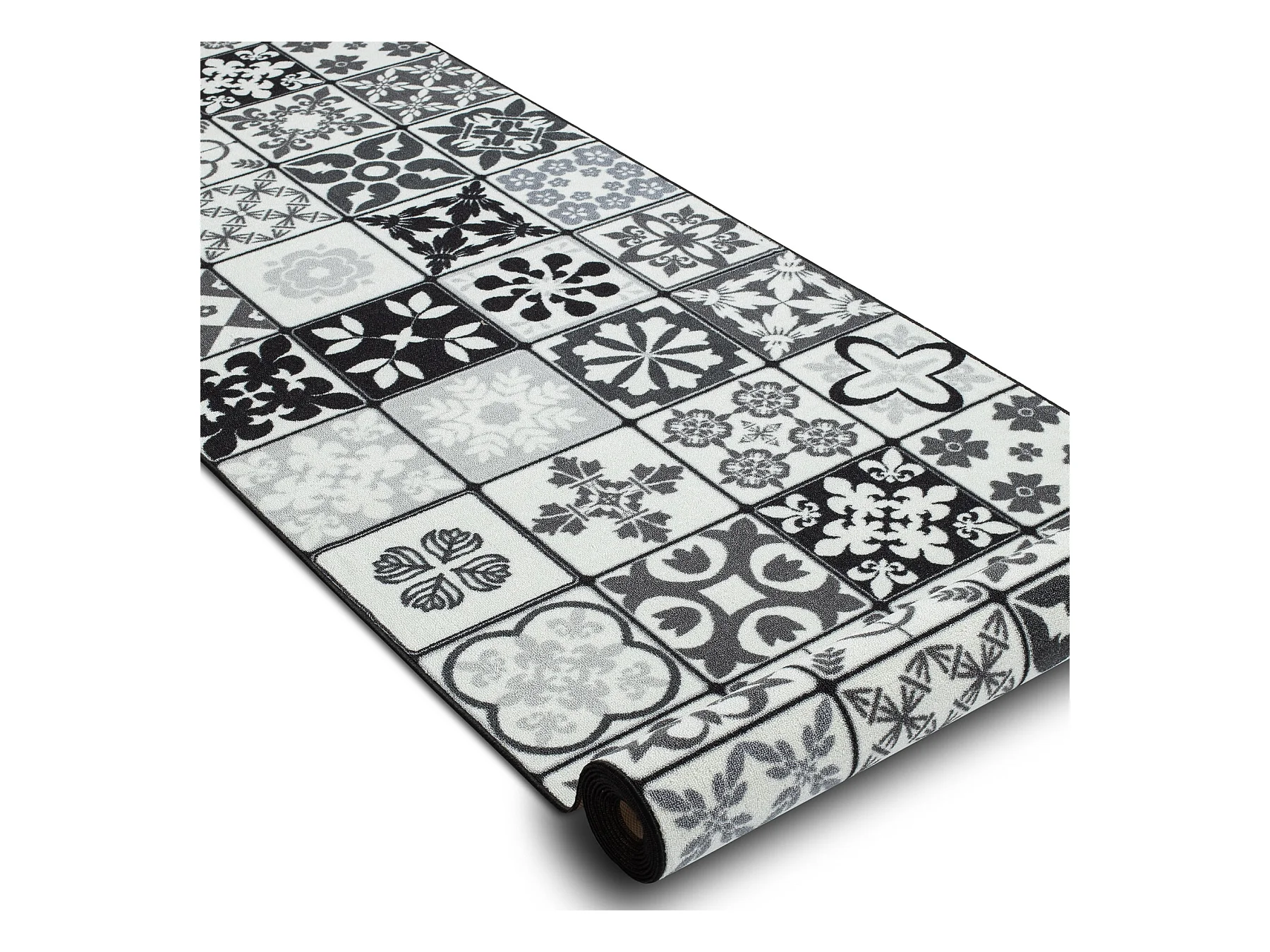Läufer Antirutsch AZULEJO PATCHWORK, LISSABONFLIESEN grau / schwarz 80x950 cm