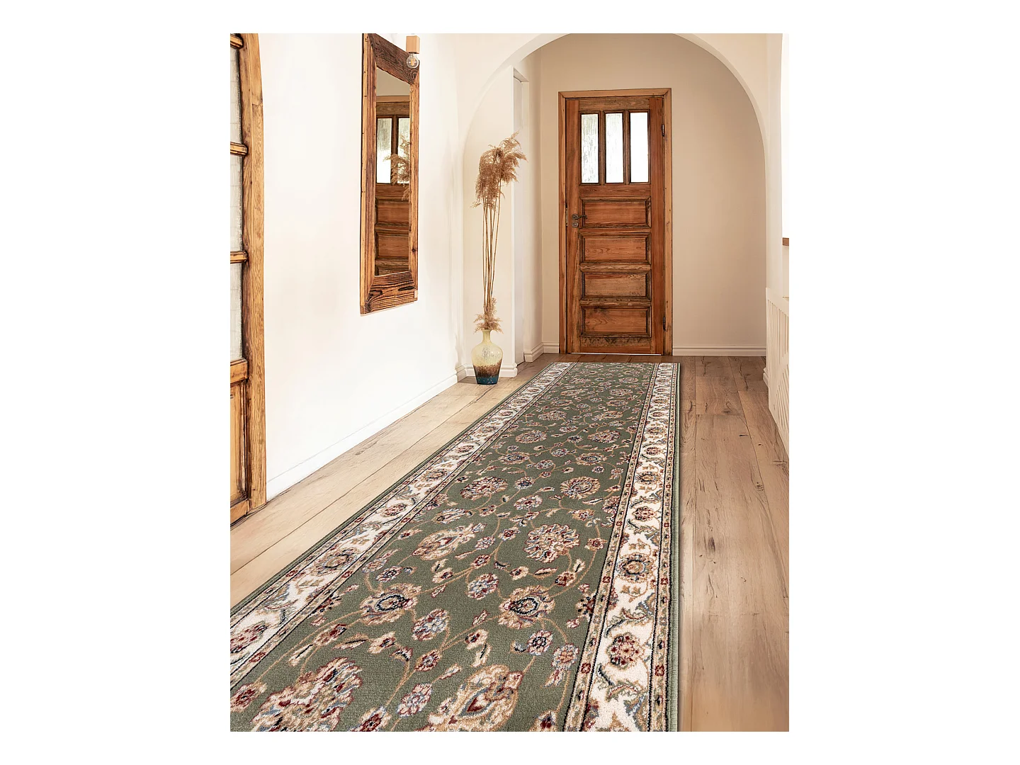 Läufer Wolle NAIN Blumen 7338 51088 grün / beige 80x750 cm
