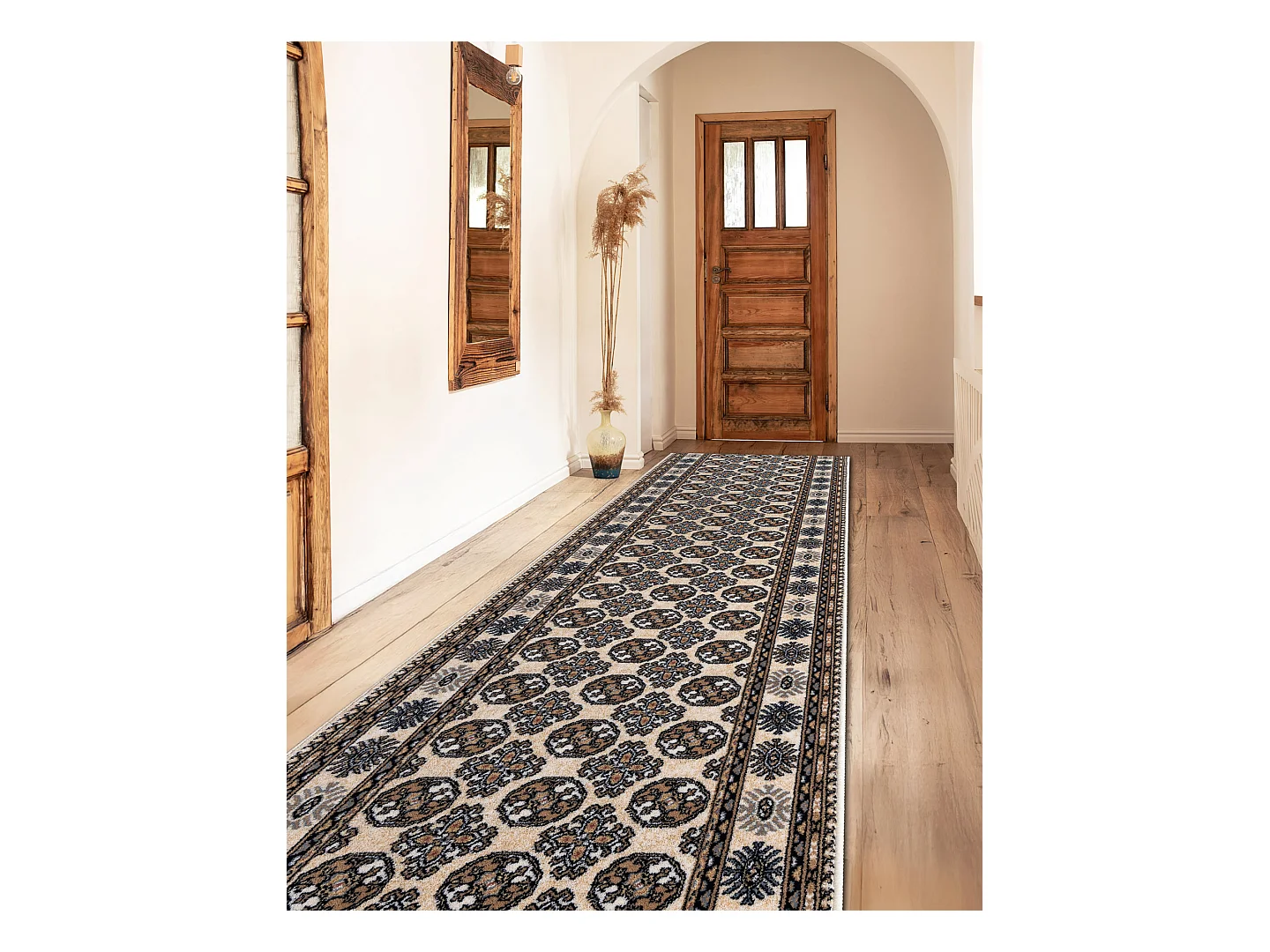 Läufer Wolle NAIN Rosette 6177 51033 beige / dunkelblau 100x950 cm