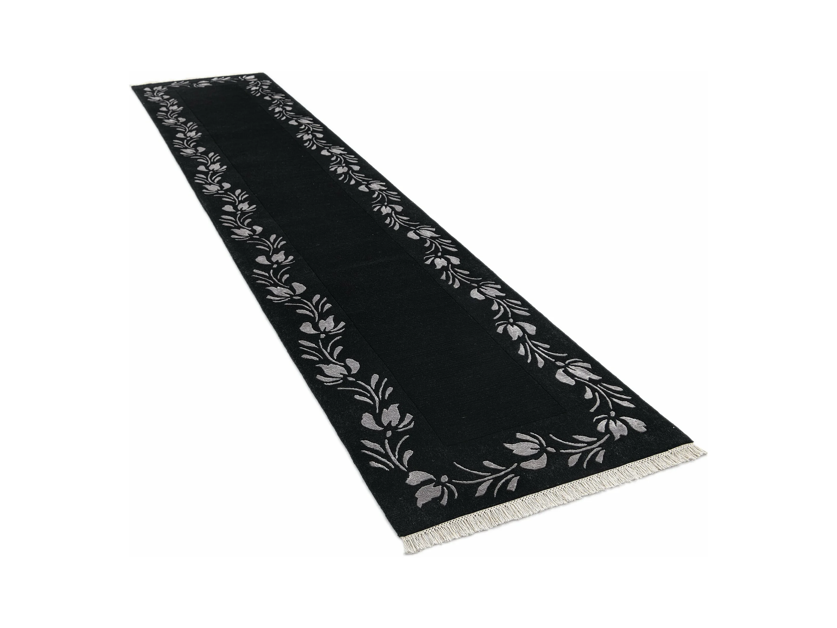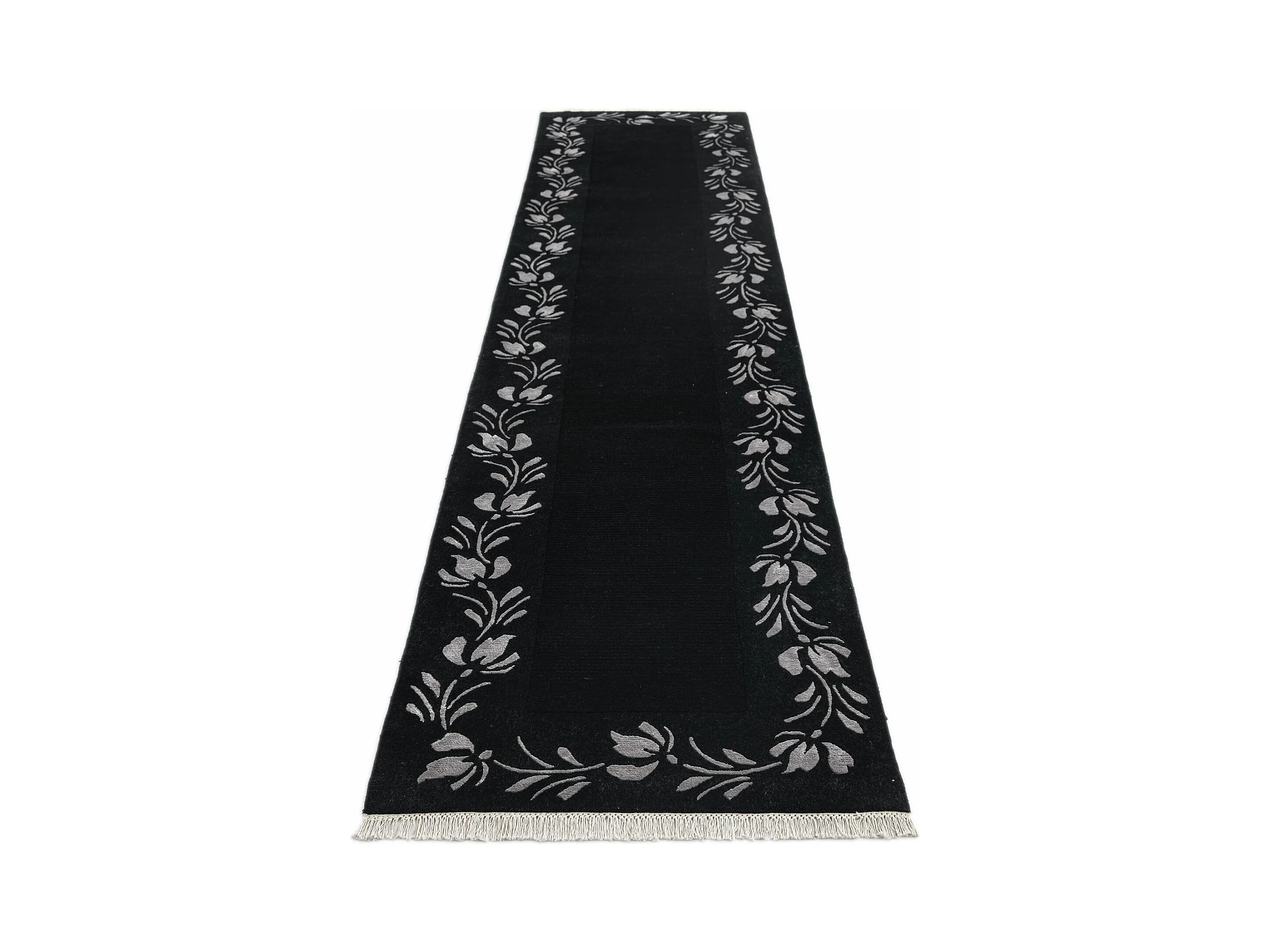 Läufer-Wollteppich 81x404 Schwarz Darya