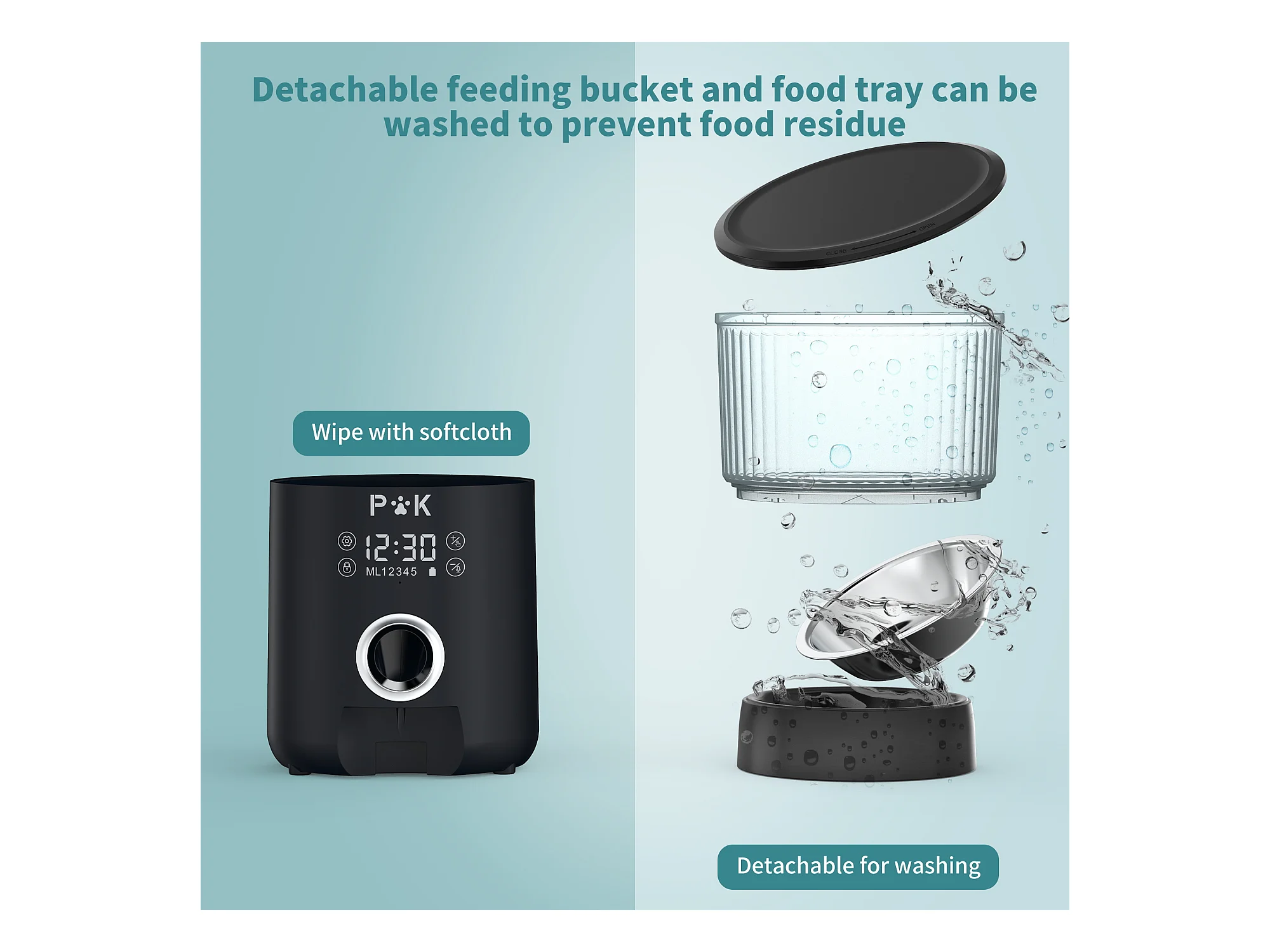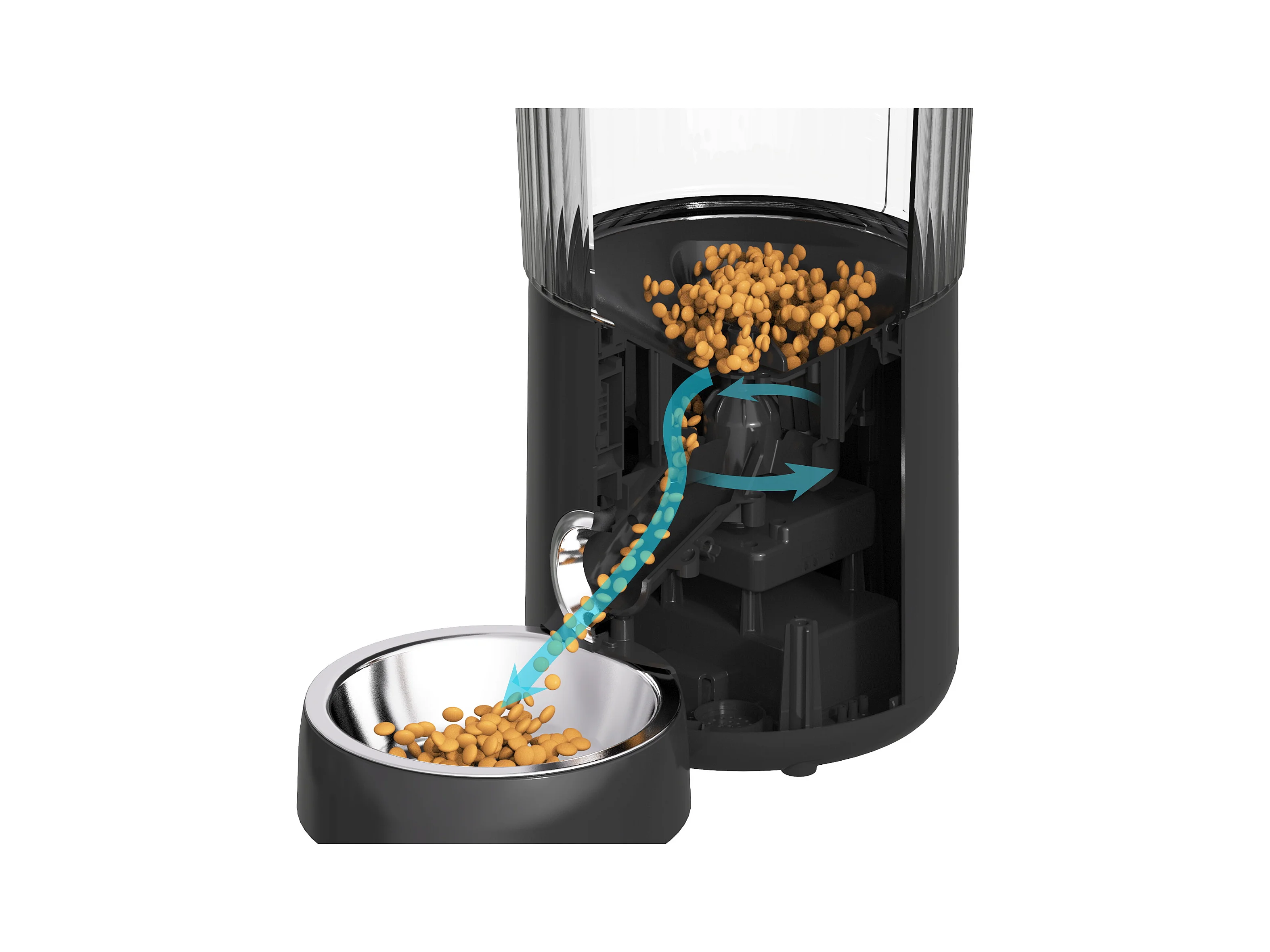 LCD 4L Katzen-/Hundefutterspender, Automatischer Futterspender mit Edelstahlnapf, Aufnahmefunktion, 5 Mahlzeiten pro Tag, Schwarz