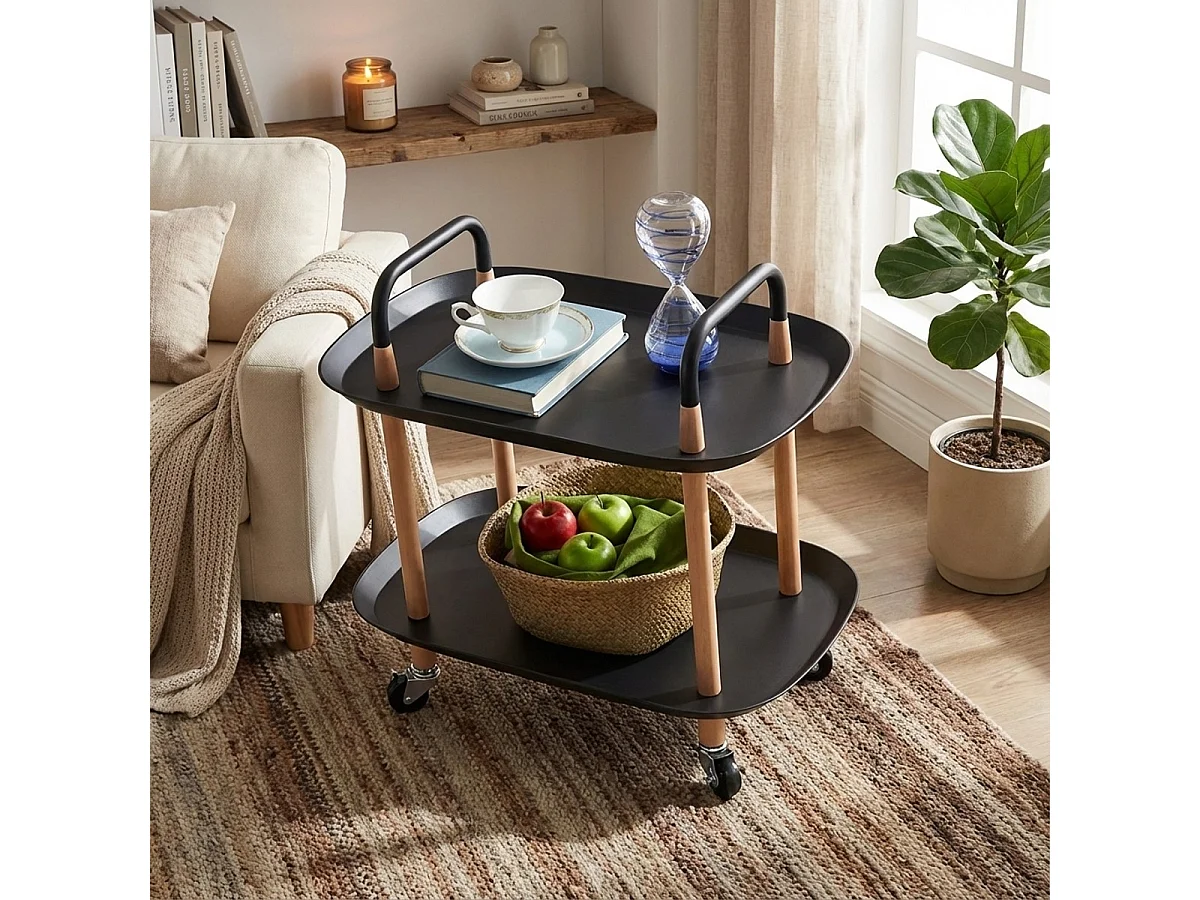 Lebensmittelwagen modern mit Rädern 2 Ablagen schwarz weiß Wala - Schwarz
